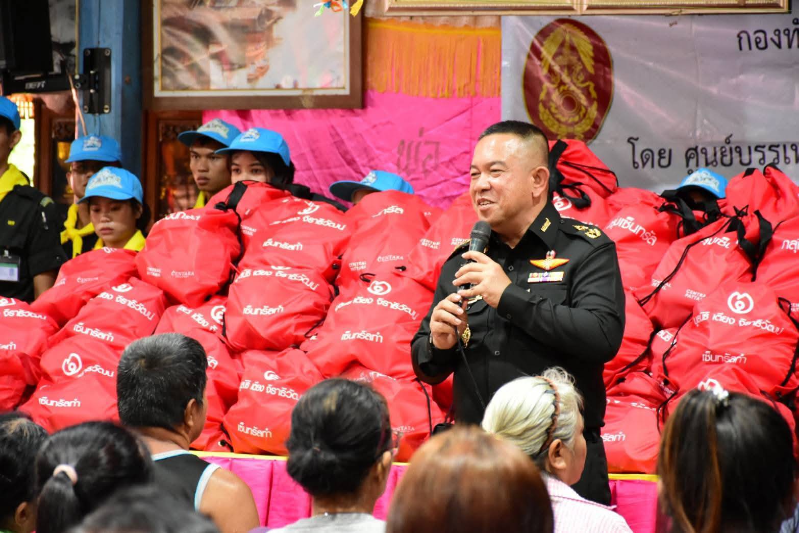 จากนั้นที่ศาลาการเปรียญวัดบางแก้ว เป็นการมอบถุงยังชีพให้กับพี่น้องประชาชนที่ได้รับผลกระทบจากเหตุอุทกภัย จำนวนกว่า 300 ชุด และได้ร่วมพูดคุยเพื่อสร้างกำลังใจกับผู้มาให้การต้อนรับอย่างเป็นกันเอง ทั้งนี้ชุดแพทย์เครื่องที่โรงพยาบาลค่ายสมเด็จพระนเรศวรมหาราช ได้ออกหน่วยบริการด้านสุขภาพให้กับประชาชน พร้อมกันนี้ คณะผู้บัญชาการมณฑลทหารบกที่ 39 และคณธผู้บริหารกลุ่มเซนทรัล ลงพื้นที่โดยใช้เรือท้องแบนกองทัพบก จำนวน 3 ลำ นำถุงยังชีพและสิ่งของบริจาค มอบให้กับครอบครัวผู้ประสบภัย จำนวน 5 หลังคาเรือน และได้พูดคุยรับฟังปัญหาของประชาชนที่รอการแก้ไข เพื่อเป็นการสร้างขวัญกำลังใจให้กับพี่น้องประชาชนให้ผ่านพ้นวิกฤตอันนี้ไปด้วยกัน และยังได้ให้คำมั่นสัญญาว่ากองทัพบกจะไม่ทอดทิ้งประชาชน เพราะ “ทหารเป็นที่พึ่งของประชาชนในทุกโอกาส”