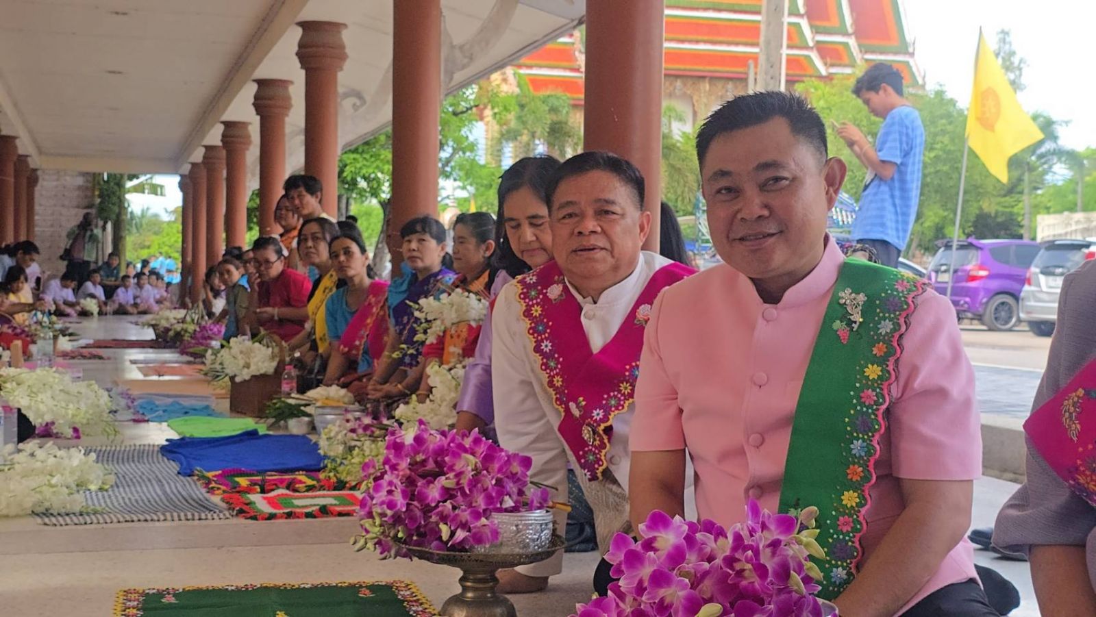 เมื่อเวลา 15.00 น.ของวันที่ 07 ตุลาคม 2568 ที่วัดเจ็ดริ้ว ต.เจ็ดริ้ว อ.บ้านแพ้ว จ.สมุทรสาคร นายชยพล รัตนวิสุทธิกุล นายอำเภอบ้านแพ้ว พร้อมด้วย นายปราโมทย์ ชาวเมืองโขง วัฒนธรรมจังหวัดสมุทรสาคร ผู้นำท้องที่ ผู้นำท้องถิ่น และชาวไทยเชื้อสายรามัญในพื้นที่ตำบลเจ็ดริ้ว ตลอดจนคณะครู นักเรียนนักศึกษา รวมถึงพี่น้องที่เป็นลูกหลานชาวไทยเชื้อสายรามัญในพื้นที่ใกล้เคียง ได้เข้าร่วมงานสืบสานประเพณีตักบาตรดอกไม้ – ล้างเท้าพระ เนื่องในวันออกพรรษา ประจำปี 2568 ซึ่งเป็นประเพณีและวัฒนธรรมดั้งเดิมของชาวไทยเชื้อสายรามัญในตำบลเจ็ดริ้ว ที่ได้ยึดถือปฏิบัติสืบต่อกันมาอย่างยาวนานกว่า 100 ปี โดยในปีนี้มีชาวไทยเชื้อสายรามัญตำบลเจ็ดริ้ว ได้มาร่วมกันทำบุญตักบาตรดอกไม้ ล้างเท้าพระกันเป็นจำนวนมาก ซึ่งการแต่งกายนั้น ส่วนใหญ่ก็จะนุ่งขาวห่มขาวและมีสไบมอญพาดไหล่ เป็นเอกลักษณ์การแต่งกายที่สำคัญของชาวมอญ(ชาวไทยรามัญ ต.เจ็ดริ้ว) ขณะที่ดอกไม้ที่นำมาตักบาตรใส่ย่ามพระภิกษุสงฆ์ส่วนใหญ่ก็จะเป็นดอกกล้วยไม้ ซึ่งเป็นดอกไม้เศรษฐกิจที่สำคัญในท้องถิ่น และมีความสวยงาม คงทน เหมาะแก่การนำไปบูชาพระ โดยบรรยากาศในปีนี้เมื่อพระภิกษุสงฆ์เดินผ่าน ทุกคนก็จะนำดอกไม้ที่เตรียมมาขึ้นบรรจบที่หน้าผากตั้งจิตอธิษฐานก่อนที่จะนำใส่ลงไปในย่ามของพระ และให้พระเหยียบบนผ้าที่ปูรองรับเท้า แล้วใช้น้ำที่บรรจุในภาชนะค่อยๆรดลงไปที่เท้าของพระเป็นการล้างเท้าทำความสะอาดให้กับท่าน ก่อนที่จะเข้าไปสวดมนต์เย็นในโบสถ์