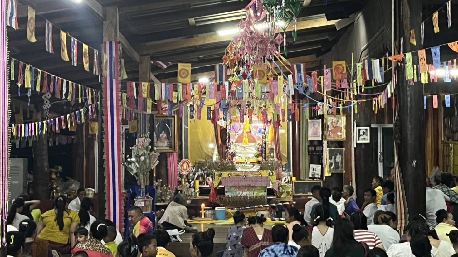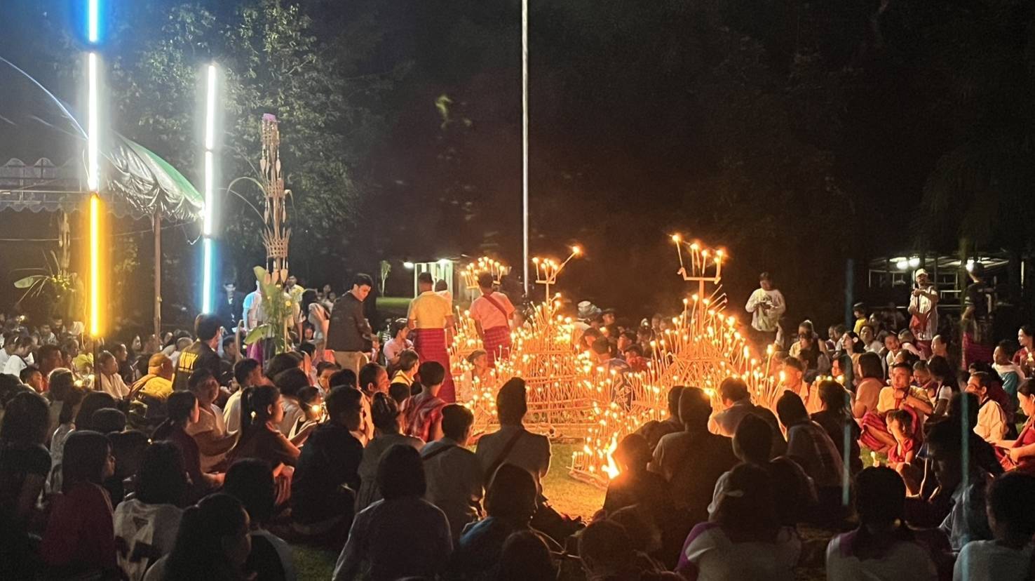 โดยปีนี้ที่บ้านสะเนพ่อง ต.ไล่โว่ อ.สังขละบุรี จ.กาญจนบุรี ซึ่งตั้งอยู่กลางป่าในเขตรักษาพันธุ์สัตว์ป่าทุ่งใหญ่นเรศวร มีการจัดพิธีไหว้เจดีย์ไฟเหมือนทุกปีที่ผ่านมา เมื่อพระอาทิตย์เริ่มตกดิน ชาวบ้านทุกเพศทุกวัยต่างทยอยเดินทางมาที่วัดสะเนพ่อง ซึ่งเป็นวัดประจำหมู่บ้าน เพื่อไหว้พระ รับศีลรับพรจากพระสงฆ์ที่จำพรรษาอยู่ที่วัดแห่งนี้ตลอดช่วงเข้าพรรษา