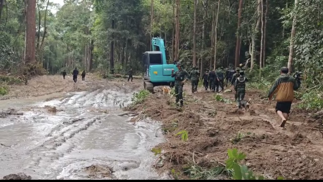 หลังจากนั้น กัน จอมพลัง ก็ได้ลงพื้นที่ไปยังฐานทหารแห่งหนึ่ง ซึ่งห่างกับพื้นที่ชายแดนประมาณ 200 เมตร เพื่อตรวจสอบสภาพเส้นทางและติดตามความคืบหน้าการก่อสร้างถนนที่มูลนิธิได้เข้ามาช่วยดำเนินการให้แก่หน่วยทหาร เนื่องจากเส้นทางเดิมมีความยากลำบากต่อการสัญจรและการลำเลียงกำลังพล จึงได้จัดทีมงานเข้ามาปรับปรุงและสร้างถนนสายดังกล่าวใหม่ เพื่อให้การเคลื่อนย้ายกำลังทหารเป็นไปอย่างสะดวกและปลอดภัยมากยิ่งขึ้นต่อไป