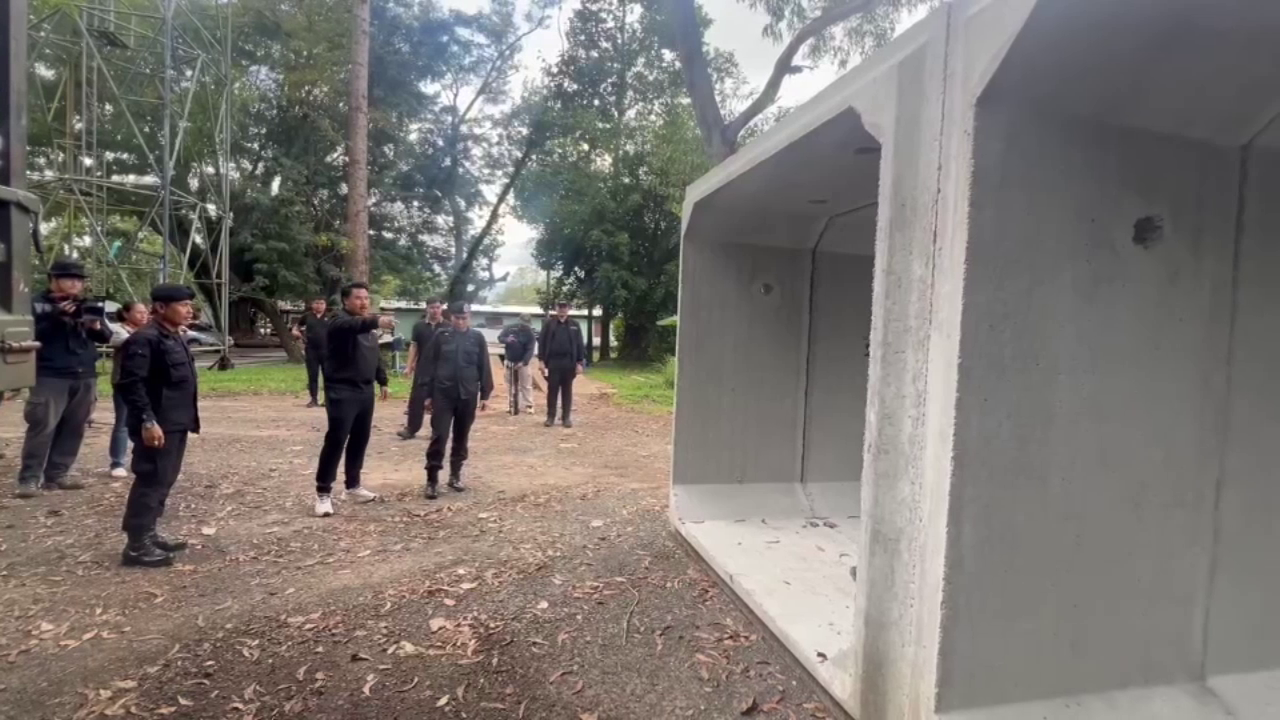กัน จอมพลัง กล่าวว่า วันนี้ได้ลงพื้นที่ทำการาก่อสร้างบังเกอร์เพิ่มเติม 2 จุด เพื่อให้ทหารพรานใช้เป็นที่หลบภัย หลังจากนี้จะลงพื้นที่ตรวจสอบถนนเส้นสำคัญอีกสายที่อยู่ระหว่างการก่อสร้าง ซึ่งเมื่อแล้วเสร็จจะช่วยให้การสัญจรและลำเลียงกำลังทหารเป็นไปอย่างสะดวกมากขึ้น เสริมความมั่นคงและปกป้องอธิปไตยของประเทศไทย สำหรับบังเกอร์ที่สร้างให้ทหารในพื้นที่นั้น ยืนยันว่า แข็งแรง ปลอดภัย และผ่านการใช้งานจริงแล้ว โดยเฉพาะที่บริเวณปราสาทตาเมือนธม ซึ่งในช่วงการเปิดยุทธการ 5 วันที่ผ่านมา ทหารในพื้นที่ได้กล่าวขอบคุณมูลนิธิที่เข้ามาช่วยสร้างบังเกอร์ให้ เพราะช่วยปกป้องชีวิตทหารไว้ได้หลายคนในจุดที่ยังคงมีร่องรอยกระสุนและระเบิดของทหารกัมพูชาอยู่มาก ที่ผ่านมา มูลนิธิกัน จอมพลัง ได้รับการประสานงานจากหลายพื้นที่ให้เข้าไปช่วยสร้างบังเกอร์เพิ่มเติม ปัจจุบันมีบังเกอร์ที่สร้างแล้วกว่า 100 จุด ราคาก่อสร้างประมาณ 150,000 บาท ไปจนถึงหลักล้านบาท โดยบางแห่ง เช่น โรงพยาบาลพนมดงรัก มีบังเกอร์ขนาดใหญ่กว่าอาคารโรงพยาบาล ภายในติดตั้งอุปกรณ์ช่วยชีวิต เครื่องปั๊มหัวใจ ระบบไฟฟ้า ห้องน้ำ และสามารถรองรับคนได้หลายร้อยคน นอกจากนี้ ยังได้สร้างบังเกอร์สำหรับทหารปืนใหญ่แนวหน้า เพื่อเสริมขวัญและความมั่นใจในการปฏิบัติหน้าที่