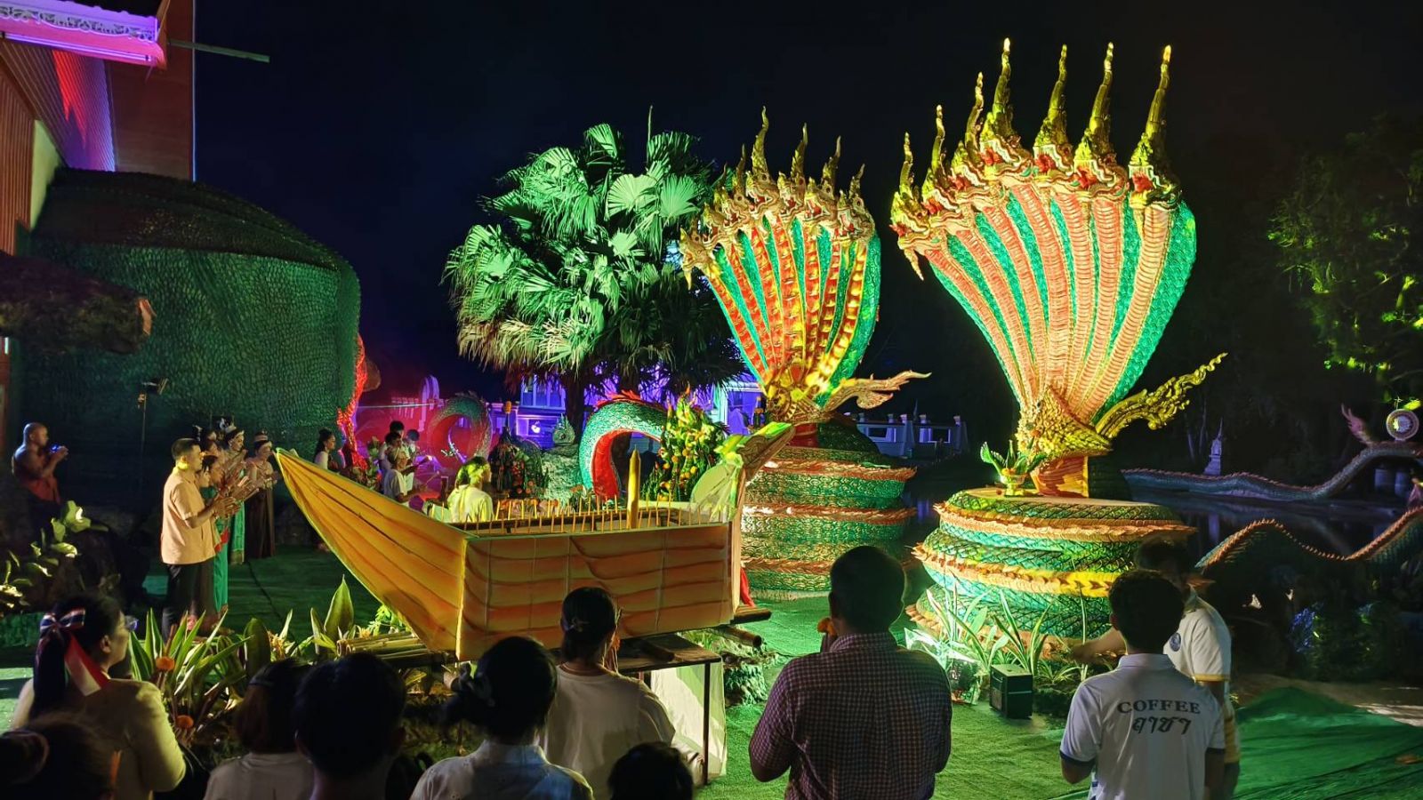เมื่อเร็วๆนี้ ที่วัดศรีสมบูรณ์รัตนาราม บ้านหนองแคน ต.สำโรง อ.อุทุมพรพิสัย จ.ศรีสะเกษ พระครูวินัยธรศักดิ์มนตรี ปภัสโร หรือหลวงปู่โชติ เจ้าอาวาสวัดศรีสมบูรณ์รัตนาราม นำศิษยานุศิษย์ พุทธศาสนิกชน และชาวบ้านในพื้นที่ ร่วมกันจัดงานพิธี “บูชาไฟพญานาค 15 ค่ำเดือน 11” และเปิดวังนาคินทร์หนองทิดแก้ว ถ้ำขุมทรัพย์นาคเศรษฐี ในช่วงเทศกาลวันออกพรรษา ประจำปี 2568 ขณะที่ชาวบ้านแห่ขอโชคลาภอย่างคึกคัก