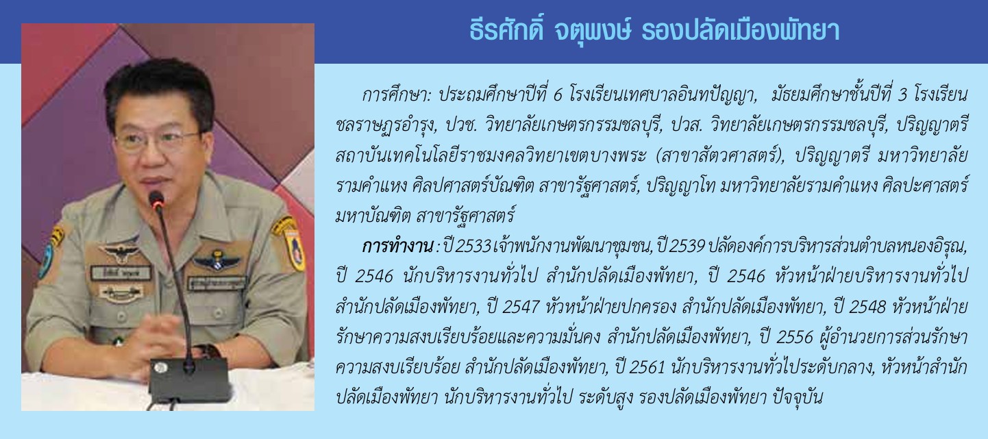 กล่าวได้ว่าการกระจายอำนาจสู่ท้องถิ่น นับเป็นจุดเริ่มต้นที่สำคัญต่อการปกครอง ในระบอบประชาธิปโตย และก็กล่าวได้อีกเช่นกัน ว่า รัฐธรรมนูญ 2540 คือต้นธารที่ส่งผลให้การ กระจายอำนาจสู่ห้องถิ่นของประเทศไทยมีความ สำคัญมากขึ้นมาเป็นลำดับซึ่งแม้ในตลอด 20 กว่าปี ที่ผ่านมา การกระจายอำนาจสู่ท้องถิ่นจะดู ลุ่มๆ ตอนๆ ไปในในแต่ละช่วงเวลาบ้าง แต่สิ่ง ที่สำคัญที่จำต้องได้อีกประการหนึ่งคือ การพัฒนา นักบริหารงานท้องถิ่น มีความรุดหน้าขึ้น เป็นลำดับ จนปัจจุบันกล่าวได้ว่า เรามีนักบริหาร งานท้องถิ่นในระดับผู้ชานาญการเติบโตขึ้น อย่างมากมาย และ 1 ในจำนวนนั้น ที่อปท.นิวส์เชิญเป็นแขก จะพาท่านผู้อ่านมาทำความรู้จักในฉบับนี้ก็คือ คุณธีรศักดิ์ จตุพงษ์รองปลัดเมืองพัทยา(นักบริหาร งานท้องถิ่น ระดับสูง) ที่ดูแลรับผิดชอบ ส่วนพัฒนา รายได้ สำนักคลัง สำนักสาธารณสุขและสิ่งแวดล้อม (ส่วนควบคุมโรค ส่วนส่งเสริมอนามัยสิ่งแวดล้อม) สำนักการศึกษา ส่วนบริหารทรัพย์สิน สำนักพัสด และทรัพย์สิน ของเมืองพัทยา ที่มีรูปแบบ การปกครองพิเศษที่แตกตำงไปจากเมืองอื่นๆ