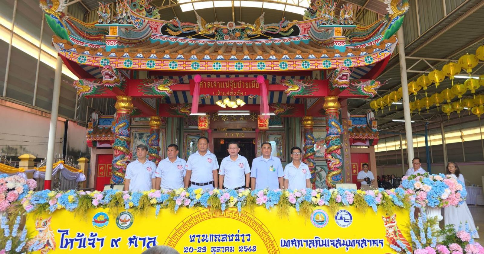เมื่อเวลา 10.29 น. ของวันที่ 15 ตุลาคม 2568ที่บริเวณศาลเจ้าแม่จุ๊ยบ๋วยเนี๊ย ถนนถวาย ตำบลท่าฉลอม อำเภอเมือง จังหวัดสมุทรสาคร นายบรรพต จันทรวงษ์ ปลัดจังหวัดสมุทรสาคร พร้อมด้วย นายชุมพล จันทร์จรัสวัฒนา นายกเทศมนตรีนครสมุทรสาคร, นายชัยวิทย์ เผื่อนอุดม ผู้อํานวยการการท่องเที่ยวแห่งประเทศไทย สำนักงานสมุทรสงคราม, นายทวีชัย แสงสายทอง ประธานศาลเจ้าแม่จุ้ยบ๋วยเตี้ย ผู้แทนศาลเจ้า 9 ศาล, นายรัชตพล มีลาภ ผู้แทนนายแพทย์สาธารณสุขจังหวัดสมุทรสาคร และนายปัญญเดช จันทร์ศิริยานันท์ ประธานชมรมผู้ประกอบการอาหารเจ ร่วมแถลงข่าวการจัดงาน “ไหว้เจ้า 9 ศาล เทศกาลกินเจสมุทรสาคร” ประจำปี 2568 โดยมีผู้แทนส่วนราชการ ภาครัฐ ภาคเอกชน ผู้แทนศาลเจ้า ผู้นำชุมชน ประชาชน และสื่อมวลชน เข้าร่วมงานแถลงข่าว