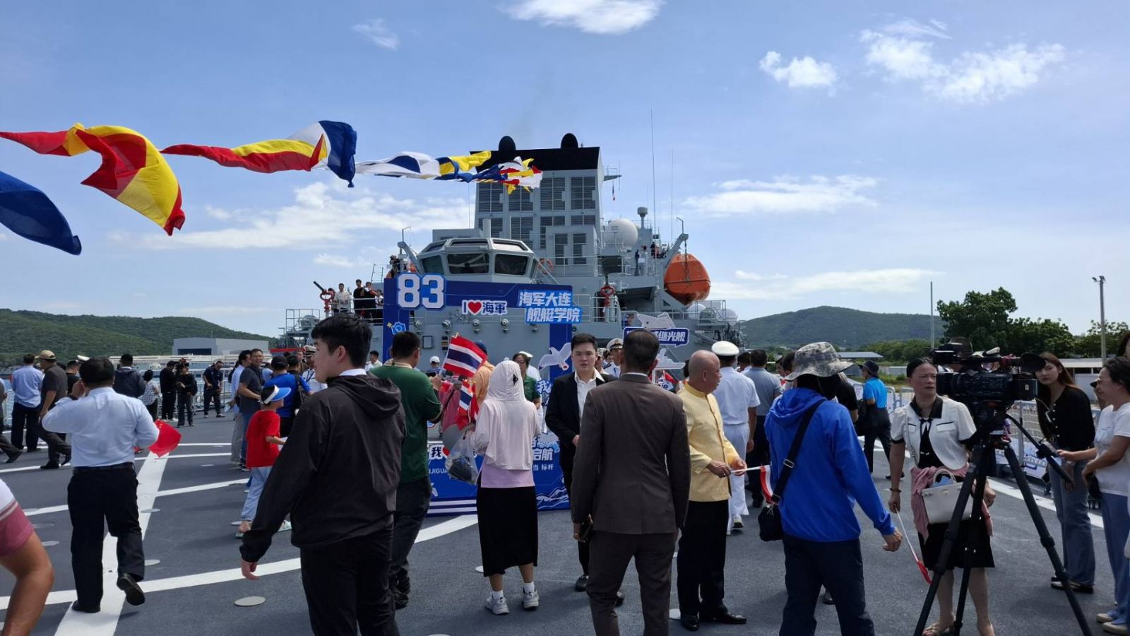 วันที่ 16 ตุลาคม 2568 ที่ท่าเทียบเรือจุกเสม็ด ฐานทัพเรือสัตหีบ จังหวัดชลบุรี พลเรือเอก กรวิทย์ ฉายะรถี ผู้บัญชาการกองเรือยุทธการ ร่วมด้วย พลเรือตรี สุรศักดิ์ เฉิดผาด ผู้อำนวยการกองการท่าเรือฐานทัพเรือสัตหีบ และนายจาง เจี้ยนฮุ่ย เอกอัครราชทูตสาธารณรัฐประชาชนจีนประจำประเทศไทย พร้อมกำลังพลกองทัพเรือไทย ร่วมให้การต้อนรับ กองเรือที่ 83 (ปาซาน) ของกองทัพเรือจีน เดินทางเยือนไทยอย่างเป็นทางการ ระหว่างวันที่ 16–20 ตุลาคม 2568 ซึ่งเป็นหมู่เรือฝึกนักเรียนนายเรือจีน 2 ลำ พร้อมกำลังพลกว่า 1,200 นาย เพื่อฝึกปฏิบัติในทะเลต่างประเทศและเสริมสร้างความร่วมมือทางทหาร เนื่องในวาระครบรอบ 50 ปีความสัมพันธ์ทางการทูตไทย–จีน