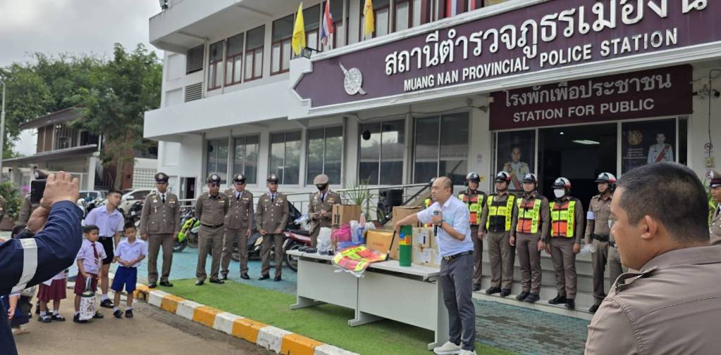 ในการนี้ได้รับเกียรติจาก พ.ต.อ.ชาญณรงค์ รัชตประทาน ผู้กำกับการสถานีตำรวจภูธรเมืองน่าน และ พ.ต.ท.ทศพล สืบกาสี รองผู้กำกับการจราจร สถานีตำรวจภูธรเมืองน่าน พร้อมด้วยข้าราชการตำรวจ ร่วมเป็นผู้รับมอบและแสดงความขอบคุณต่อการสนับสนุนอันมีคุณค่าจากภาคเอกชนในครั้งนี้