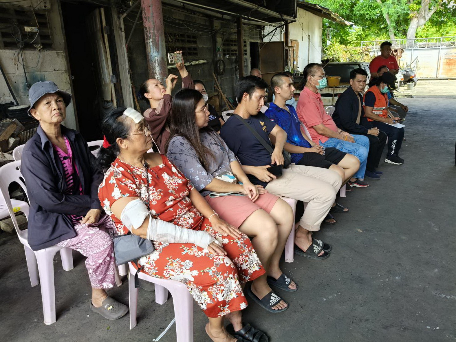 ซึ่งได้มี นางชะลอ บุญซิม ได้ได้รับบาดเจ็บจากไฟลวกที่หน้าผากและแขนขวา พร้อมด้วยครอบครัวรอให้การต้อนรับที่ในอู่ดังกล่าว หลังจากที่ทางคณะได้เดินทางมาถึงเจ้าคณะภาค 3 ได้เป็นตัวแทนของตณะสงฆ์ได้กล่าวให้กำลังใจกับเหตุการณ์ที่เกิดขึ้น ทั้งนี้สืบเนื่องมาจากที่ นางชะลอ ได้สมัครเป็นสมาชิกของโครงการกองทุน "สังฆประชานุเคราะห์ คณะสงฆ์จังหวัดลพบรี" ทางคณะสงฆ์ได้เดินทางนำเครื่องอุปโภค บริโภค และเงินสดจำนวน 1 แสนบาทมาให้การช่วยเหลือในเบื้องต้นตามที่โครงการกำหนด นอกจากนี้ทางส่วนราชการ ทางกาชาดจังหวัด ทางมูลนิธิก็จะเข้ามาให้การช่วยเหลืออีก