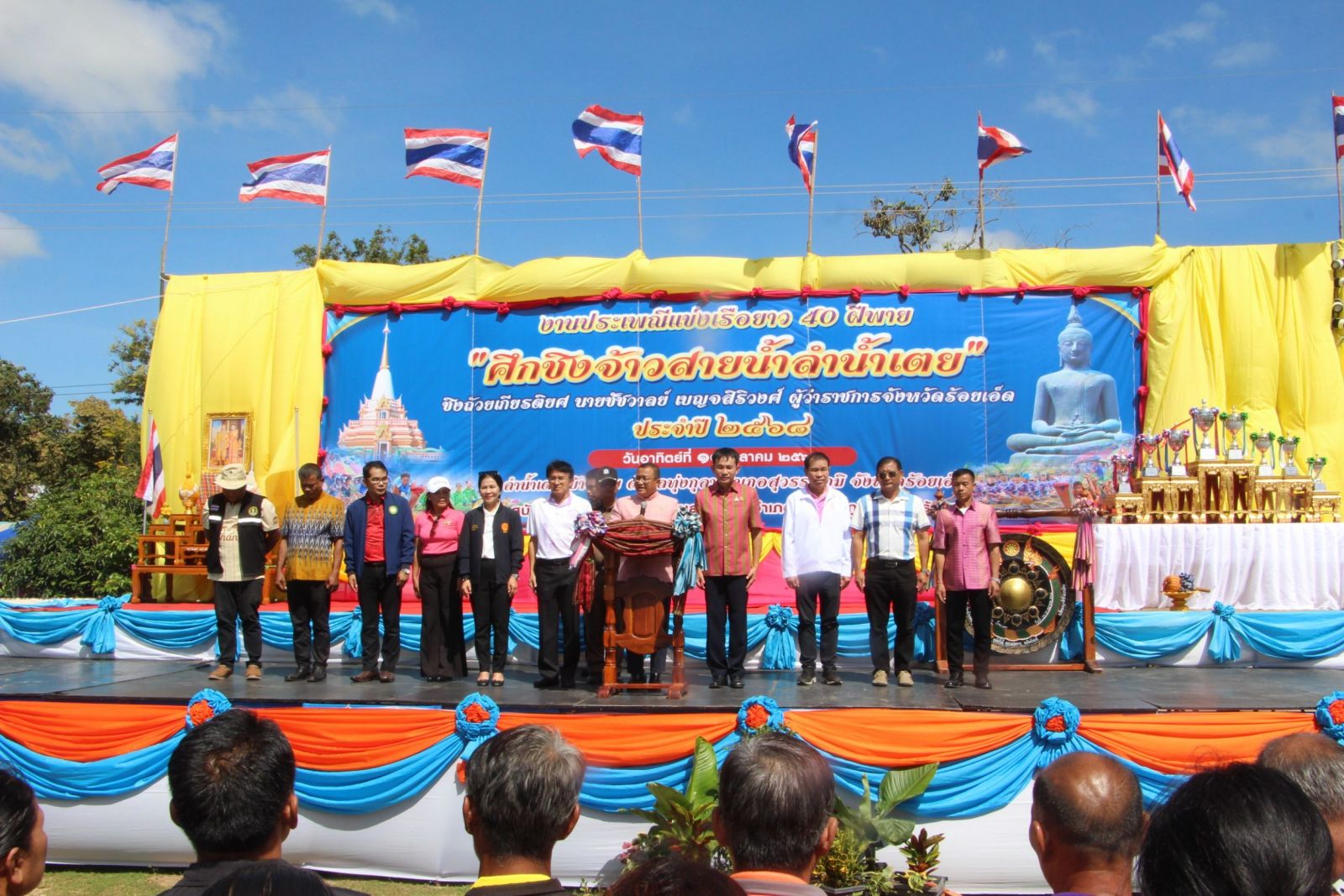 วันที่ 19 ตุลาคม 2568 เวลา 09.00 น. นายชัชวาลย์ เบญจสิริวงศ์ ผู้ว่าราชการจังหวัดร้อยเอ็ด เป็นประธานเปิดงาน ประเพณีแข่งเรือยาว 40 ฝีพาย “ศึกชิงจ้าวสายน้ำลำน้ำเตย” อำเภอสุวรรณภูมิ ประจำปี 2568 โดยมี หัวหน้าส่วนราชการ นายอำเภอสุวรรณภูมิ ผู้นำท้องที่ ผู้นำท้องถิ่น และประชาชน ร่วมชมและเชียร์อย่างคึกคัก ณ ลำน้ำเตย บ้านเลย ตำบลทุ่งกุลา อำเภอสุวรรณภูมิ จังหวัดร้อยเอ็ด