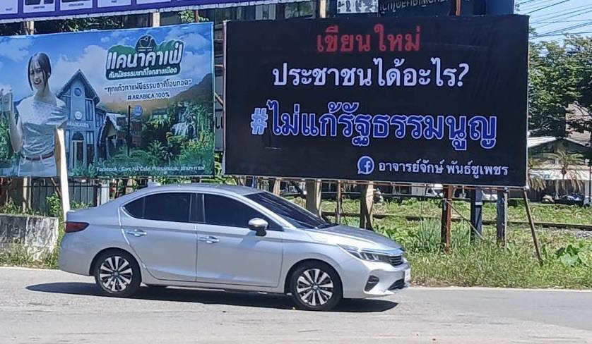 ขณะเดียวกัน มีรายงานว่าประชาชนบางส่วนได้ถ่ายภาพป้ายเหล่านี้แชร์ต่อในโลกออนไลน์ พร้อมข้อความว่า “ถึงเวลาที่คนไทยต้องถามก่อนว่า เขียนใหม่แล้วเราจะได้อะไร?”