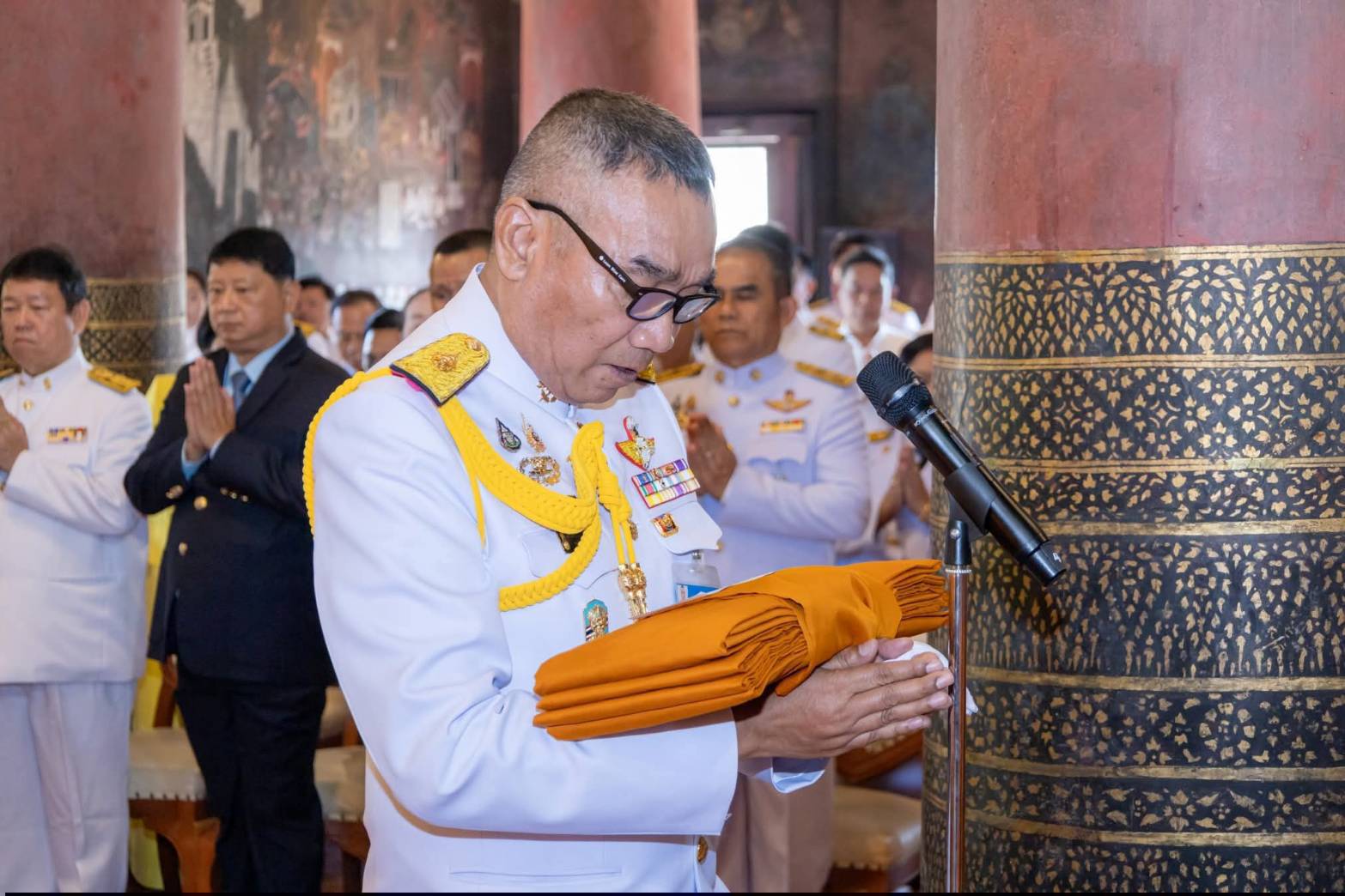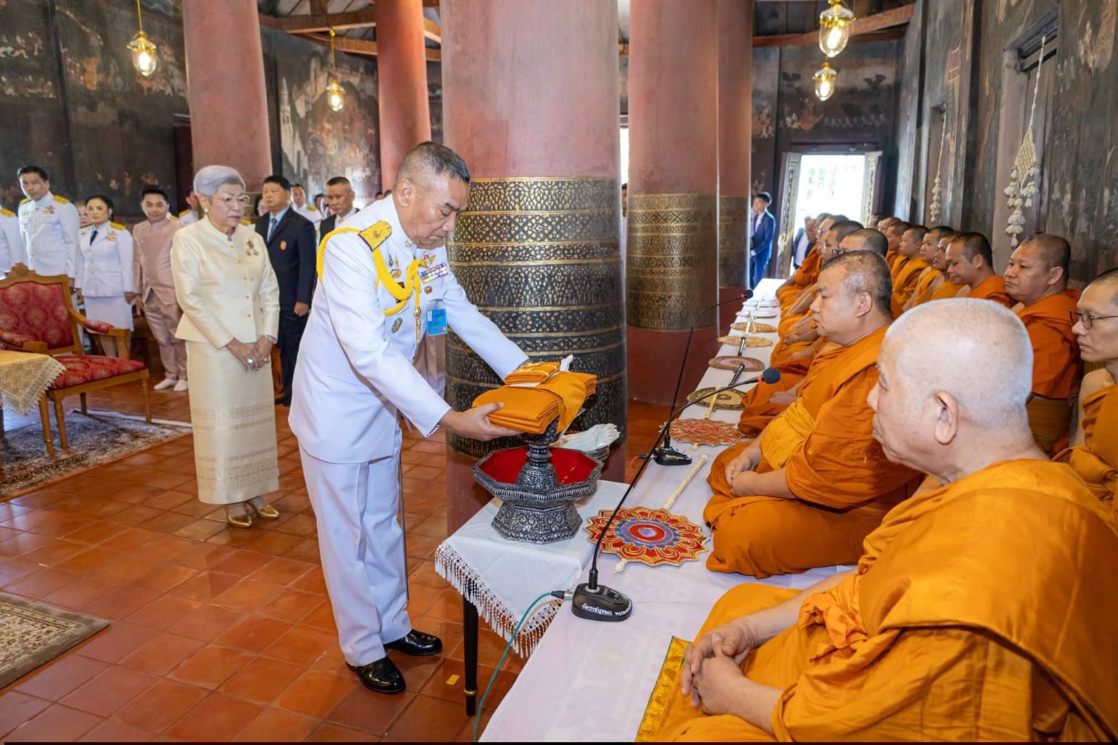 วันที่ 22 ตุลาคม 2568 เวลา 09.09 น. ณ พระอุโบสถ วัดราชบูรณะ พระอารามหลวง ตำบลในเมือง อำเภอเมืองพิษณุโลก จังหวัดพิษณุโลก พลเอกธเนศ วงศ์ชะอุ่ม ที่ปรึกษากองอำนวยการรักษาความมั่นคงภายใน ภาค 2 ผู้แทนนายมนัส เสือเปลี่ยว รองอธิบดีกรมมหาดเล็ก 904 (1) และนางอังศณา (ชวนะนันท์) วัฒนานุกิจ ร่วมเป็นประธานในพิธีถวายผ้าพระกฐินพระราชทาน โดยมีนายบุญเหลือ บารมี รองผู้ว่าราชการจังหวัดพิษณุโลก รักษาราชการแทนผู้ว่าราชการจังหวัดพิษณุโลก หัวหน้าส่วนราชการ ข้าราชการ และพุทธศาสนิกชน เข้าร่วมพิธีเป็นจำนวนมาก