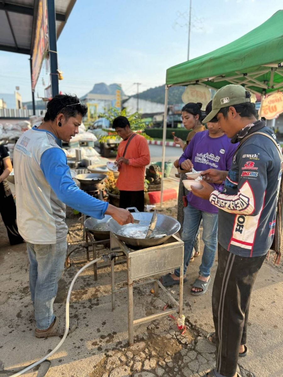 ผู้สื่อข่าวรายงานว่านายสมเกียรติ และนางสาวศิริบูรณ์ พฤกษาไพศาลศิลป์ เจ้าของร้านเสรีวัสดุภัณฑ์ หมู่ที่ 1 ตำบลท่าขนุน อำเภอทองผาถูมิ จังหวัดกาญจนบุรี เปิดเผยว่าในช่วงเทศกาลกินเจ ทางเราได้ทำอาหารเจ เผือกทอด ข้าวโพดทอด สูตรอาม่า สดสะอาด ตั้งใจทำแจกจ่ายให้กับประชาชนที่ผ่านไปมาบริเวณหน้าร้านเสรีวัสดุภัณฑ์ ตั้งแต่เวลา 16.00 น.เป็นต้นไป ตั้งแต่วันที่ 21-30 ตุลาคม 2568 เราได้ตั้งเต็นท์และมีป้ายโรงทาน เลี้ยงฟรี มีลูกน้องที่ร้านมาช่วยกันทอดเผือก ข้าวโพด แล้วนำแจกจ่ายให้กับคนที่ผ่านไปมากินฟรี มีคนทยอยมารับอาหารเจอย่างต่อเนื่อง ตนรู้สึกมีความสุขและอิ่มบุญที่ได้ทำอาหารเจแจกในครั้งนี้ ต้องขอร่วมอนุโมทนาบุญด้วย