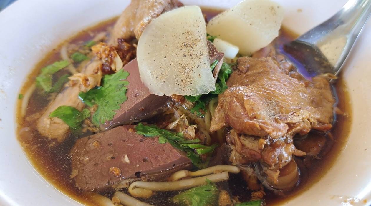 รถแดงสองแถวคันนี้ของดรับผู้โดยสาร แต่มาขอทำหน้าที่เป็นร้านก๋วยเตี๋ยวเป็ดตุ๋นแทน เพราะเหนื่อยล้ามาหลายปีหลังทำหน้าที่รับ – ส่งผู้โดยสารขึ้นดอยสุเทพมากว่าสามสิบปี