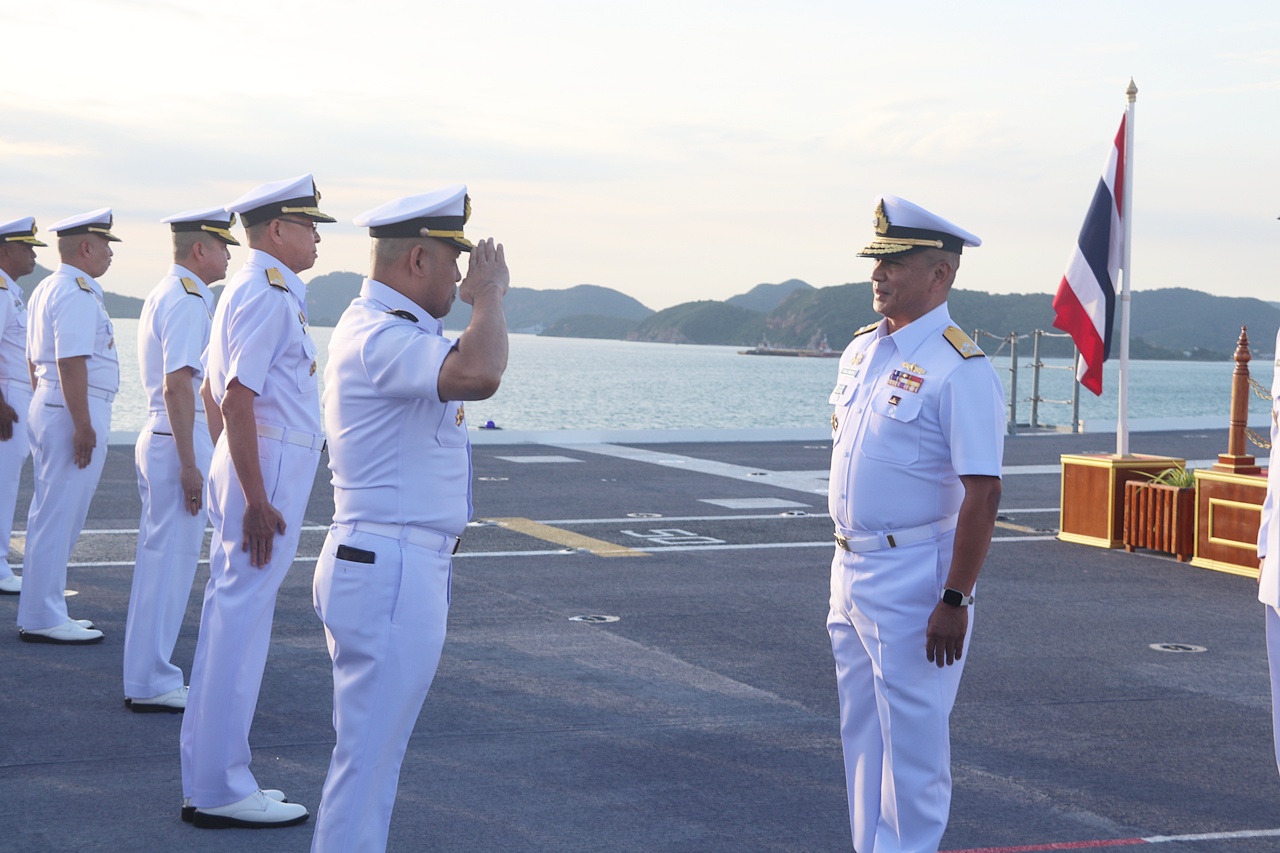 วันนี้ พลเรือเอก ไพโรจน์ เฟื่องจันทร์ ผู้บัญชาการทหารเรือ พร้อมด้วยคณะนายทหารชั้นผู้ใหญ่ของกองทัพเรือ เดินทางไปตรวจเยี่ยมกองเรือยุทธการ บนเรือหลวงจักรีนฤเบศร โดยมี พลเรือเอก กรวิทย์ ฉายะรถี ผู้บัญชาการกองเรือยุทธการ และนายทหารชั้นผู้ใหญ่จากหน่วยต่าง ๆ ของกองทัพเรือในสังกัดของกองเรือยุทธการ ให้การต้อนรับ พร้อมทั้งเรียนเชิญผู้บัญชาการทหารเรือ ขึ้นแท่นเพื่อรับการยิงสลุตคำนับ โดยเรือหลวงเจ้าพระยา จำนวน 19 นัด ณ ท่าเรือจุกเสม็ด การท่าเรือสัตหีบ ฐานทัพเรือสัตหีบ อำเภอสัตหีบ จังหวัดชลบุรี