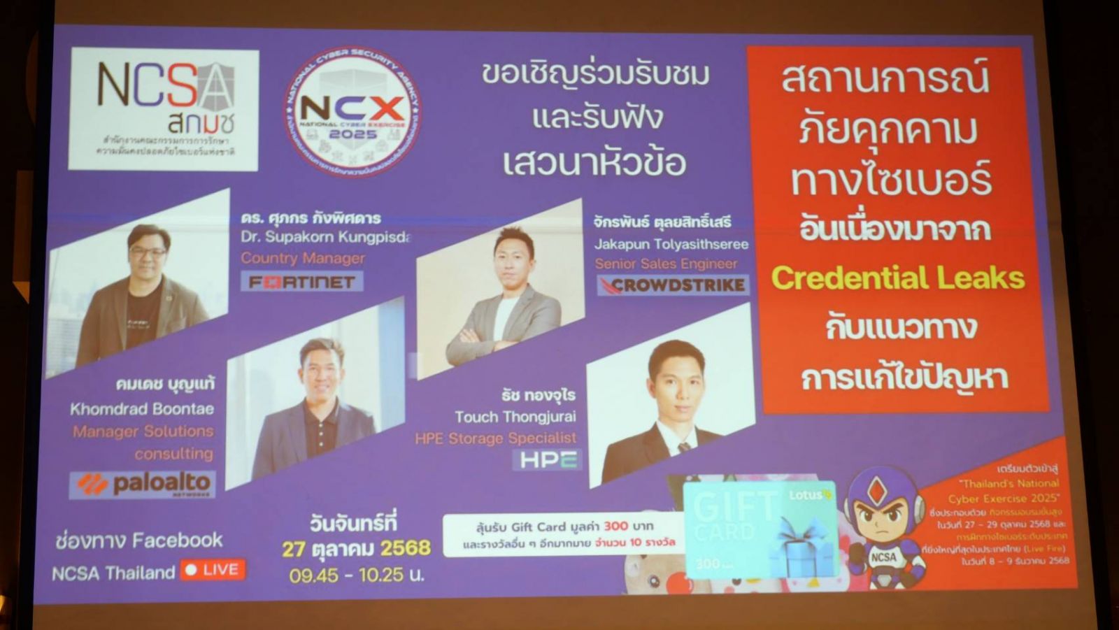 นอกจากนี้ ภายในงานยังมีการเสวนาในหัวข้อ “สถานการณ์ภัยคุกคามทางไซเบอร์อันเนื่องมาจาก Credential Leaks กับแนวทางการแก้ไขปัญหา” เพื่อสร้างความเข้าใจเกี่ยวกับความเสี่ยงจากการรั่วไหลของข้อมูลบัญชีผู้ใช้ พร้อมแนวทางป้องกันและรับมือที่หน่วยงานสามารถนำไปปรับใช้ได้จริง