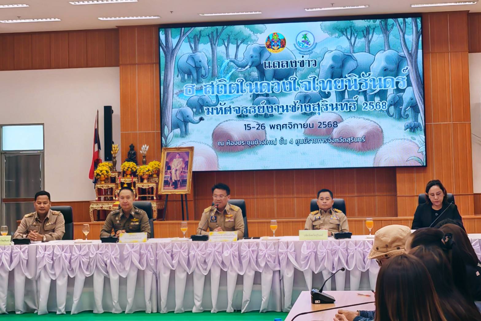 เมื่อวันที่ 28 ตุลาคม 2568 นายประภาส ศรีจันทร์เวียง รองผู้ว่าราชการจังหวัดสุรินทร์ ปฏิบัติราชการแทนผู้ว่าราชการจังหวัด นายกิตติ สัตย์ซื่อ ปลัดจังหวัดสุรินทร์ รองผู้บังคับการตำรวจภูธรจังหวัด ประธานหอการค้า ประชาสัมพันธ์จังหวัด ได้ร่วมกับส่วนงานที่เกี่ยวข้อง จัดแถลงข่าวด่วนต่อคณะสื่อมวลชน หลังมีการประชุมด่วนเพื่อสรุปทิศทางและมาตรการการจัดงาน “ธ สถิตในดวงใจไทยนิรันดร์ มหัศจรรย์งานช้างสุรินทร์ 2568“ ที่เปลี่ยนชื่องานงานมหัศจรรย์งานช้างสุรินทร์ ทั้งนี้หลังจากพิจารณาอย่างรอบคอบแล้ว ที่ประชุมมีมติชัดเจนว่าทุกกิจกรรมในงานจะเป็นการปรับเปลี่ยนในบางส่วนเพื่อความเหมาะสมต่อช่วงไว้อาลัย