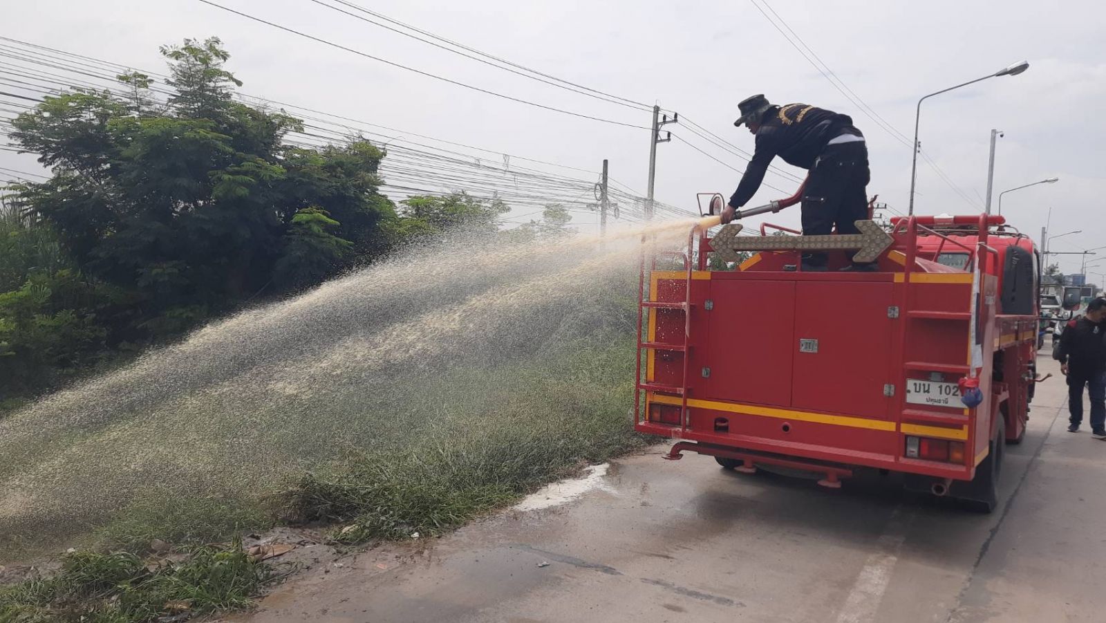 ต่อมา นายสุกฤษฏิ์ ผ่องคำพันธุ์ เลขานุการนายกเทศมนตรีเมืองบางคูวัด และ นายเมธาสิทธิ์ กิ่งแก้ว นักวิชาการสุขาภิบาล ได้ลงพื้นที่เพื่อตรวจสอบ พร้อมกล่าวว่า เบื้องต้นทางเทศบาลเมืองบางคูวัด โดยตามคำสั่งของนายกเทศมนตรีเมืองบางคูวัด เราได้ลงพื้นที่ตรวจสอบข้อเท็จจริงแล้วและพบว่ามีร่องรอยการทิ้งสิ่งปฏิกูลลงไปที่ริมทางจริง ซึ่งพื้นที่บริเวณดังกล่าวอยู่ในการดูแลของหมวดทางหลวงไทรน้อย เบื้องต้นทสงเทศบาลเมืองบางคูวัด ได้ประสานงานกับหมวดทางหลวงไทรน้อยแล้ว ซึ่งทางหมวดทางหลวงเอง ก็แนะนำมาว่าให้ดำเนินการด้วย พ.ร.บ.รักษาความสะอาด 2535 โดยทางเทศบาลเมืองบางคูวัด ก็ไม่ได้นิ่งนอนใจ เราก็จะประสานงานกับนิติกรเพื่อศึกษาความเป็นไปได้ของเรื่องกฎหมาย เบื้องต้นในเรื่องของกลิ่น เราก็ประสานงานไปทางหน่วยงานที่เราสามารถมีขอบเขตในการที่จะเข้ามาช่วยเหลือได้ โดยเอารถน้ำผสมอีเอ็มชีวภาพมาฉีด แล้วก็เป็นน้ำหมักเพื่อเจือจางกลิ่น ถือเป็นการบรรเทาผลกระทบเรื่องกลิ่นให้พี่น้องประชาชนที่อยู่บริเวณแถวนี้ เพื่อจะได้มีความเดือดร้อนเรื่องกลิ่นให้น้อยลงไปก่อน