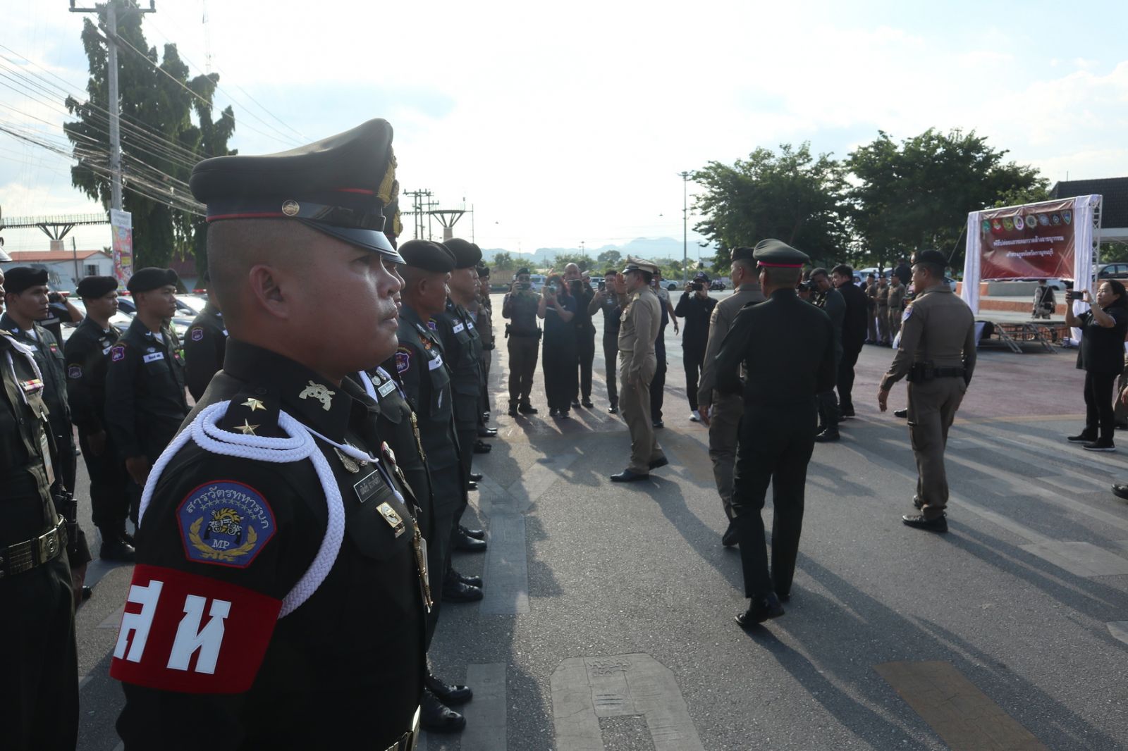 โดยมี พลตำรวจตรีพศวีร์ เรืองภู่ ผบก.ภ.จว.กาญจนบุรี พลตรีชนมากรณ์ ภิบาลชนม์ ผบ.มทบ.17 พันเอกคทาวุธ ชัยยัง รอง ผอ.รมน.จังหวัดกาญจนบุรี(ท.) พันตำรวจเอกสธนทัต ตั้งสิทธิ์เสรีวงศ์ รอง ผบก.ภ.จว.กาญจนบุรี (ปป.)นายทรัฑ เหลืองสอาด ปลัดจังหวัดกาญจนบุรี พันตำรวจเอกสุรยุทธ เมฆมังกร ผกก.สภ.เมืองกาญจนบุรี รวมถึง ผู้กำกับจากสภ.ลาดหญ้า สภ.ท่าม่วง สภ.พนมทวน สภ.ด่านมะขามเตี้ย สภ.ท่ามะกา สภ.ท่าเรือ สภ.หนองขาว สภ.สำรอง เจ้าหน้าที่ กอ.รมน.กาญจนบุรี นำรถสายตรวจเข้าร่วม มีเจ้าหน้าที่ตำรวจสายตรวจรถยนต์ รถจักรยานยนต์ เจ้าหน้าที่ ตชด.13 เจ้าหน้าที่ กก.สส.ภ.จว.กาญจนบุรี ตลอดจนเจ้าหน้าที่ตำรวจทางหลวง ตำรวจท่องเที่ยว และเจ้าหน้าที่มูลนิธิพิทักษ์กาญจน์ รวมกว่า 300 นาย ร่วมปล่อยแถว