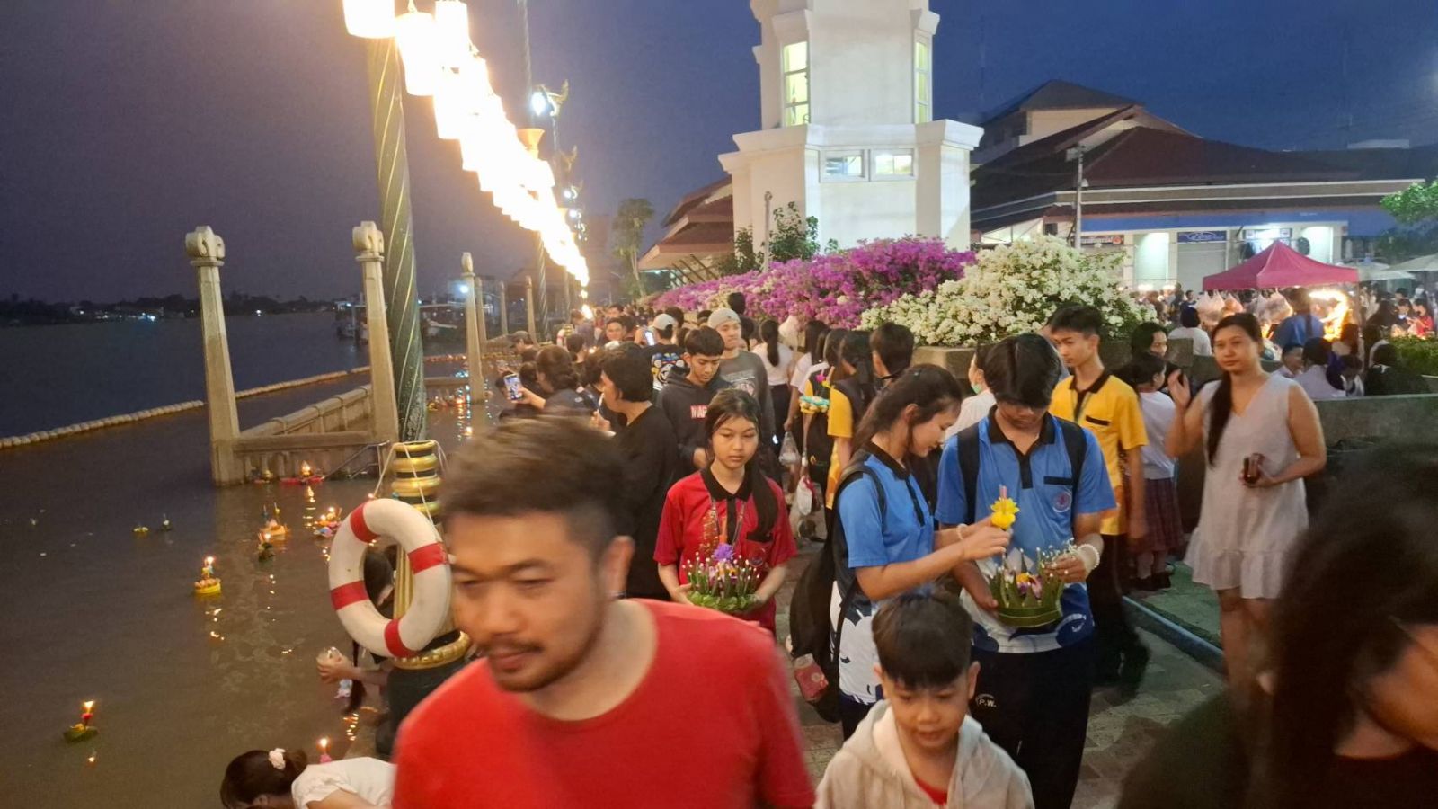 พร้อมกันที่บริเวณท่าน้ำริมเขื่อนเจ้าพระยา ประชาชน นักเรียน นักศึกษา จำนวนมากเดินทางมาร่วมงานลอยกระทงกันอย่างคึกคัก นอกจากนี้ยังพบว่ามีสามีภรรยาคู่หนึ่ง ได้นำกระทงขนมปังซึ่งปั้นเป็นรูปของทหารและรถถังพร้อมธงชาติไทย มาทำการลอยกระทงพร้อมตั้งจิตอธิษฐานขออวยพรให้กับทหารกล้าที่อยู่แนวชายแดนกำลังรักษาปกป้องอธิปไตยอยู่นั้น ให้มีความสุขและแคล้วคลาดปลอดภัย