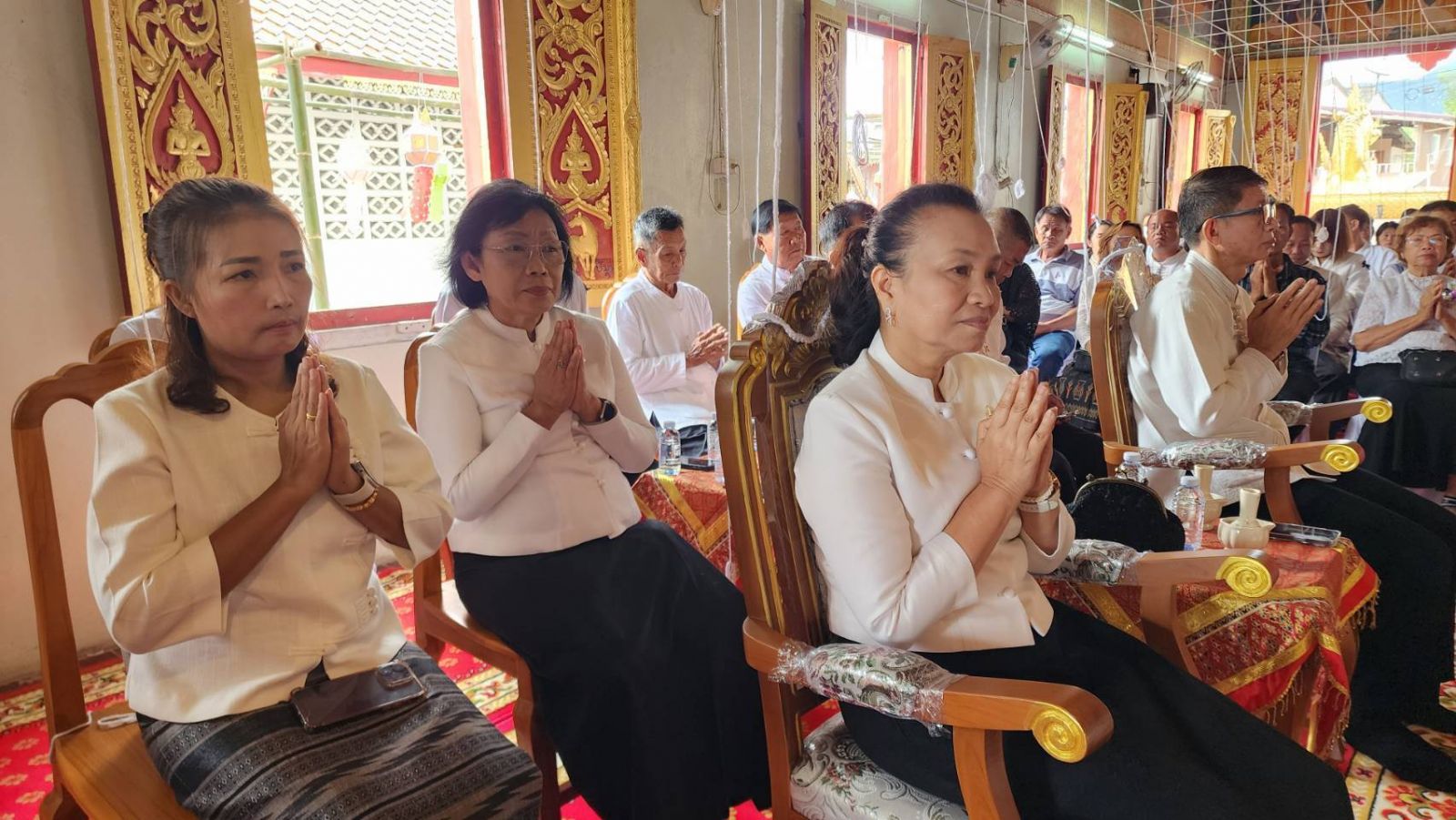 ณ วัดหลวง ตำบลสวด อำเภอบ้านหลวง จังหวัดน่าน ดร.รัฐรุจน์ ปิยะพงศ์ภัทร์ ที่ปรึกษาประธานคณะกรรมาธิการคุ้มครองผู้บริโภค, คุณแม่หลั่น หล่อวงศ์, นายกันตภณ สุขุมมาริน พร้อมด้วย
