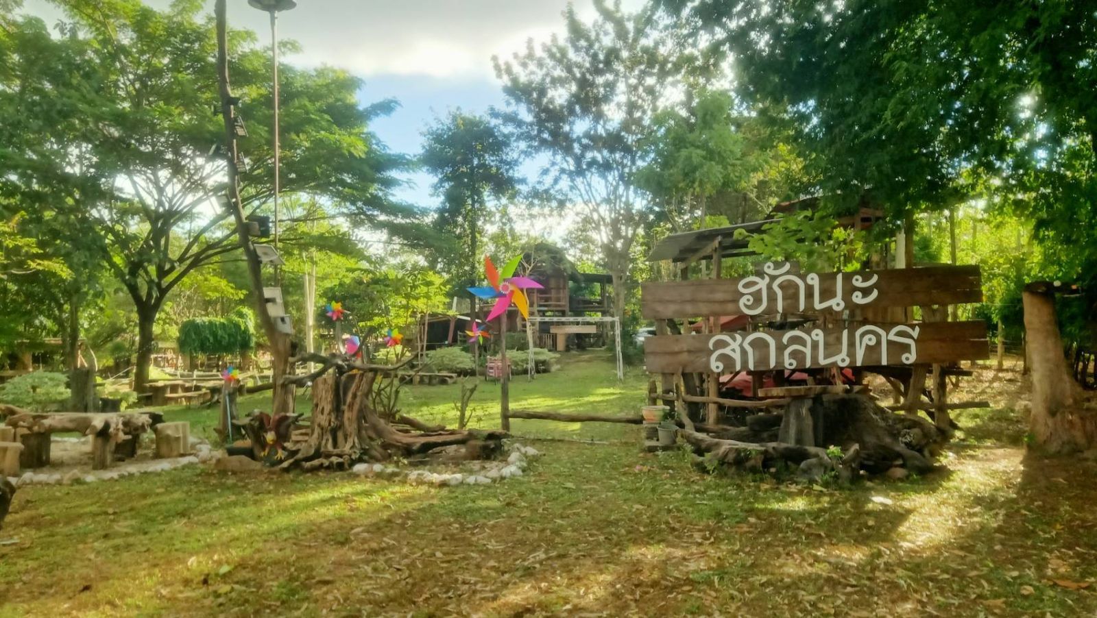 ซึ่งนายยวงยศ จินดาทะจักร ผอ.ศูนย์วิจัยและพัฒนาพันธุ์สัตว์สกลนคร บอกว่าที่ดินได้มาซื้อที่ดินตรงนี้เมื่อ 10 กว่าปีที่แล้ว ในพื้นที่ 8 ไร่ ที่หมู่บ้านลาดกะเฌอ ต.ห้วยยาง อ.เมือง จ.สกลนคร ปลูกบ้านเพื่อใช้เป็นที่อยู่อาศัย จนมาเมื่อปี 2562 ที่ผ่านมาเกิดความคิดที่จะสร้างบ้านในต้นไม้ คือมีต้นกระบกขนาดใหญ่อายุกว่า 100 ปี จึงได้รวบรวมไม้จากดรือนเก่าเท่าที่พอหาได้ ทำการก่อสร้างบ้านบนต้นไม้ เริ่มแรกก็ทำชั้นเดียว ต่อมาก็ขยายออกไปเป็น 2-3 และ 4 ชั้น และ 6 ชั้น โดยชั้น 2 จะทำเป็นที่จัดเลี้ยง สัมมนา และสังสรรค์ จุคนได้ประมาณ 60 คน ไม้จะแน่นหนาไม่โยกคงทนแข็งแรง ชั้น 3,4,5,6, ก็เป็นที่นั่งชมวิว มองได้รอบทิศ 360 องศา