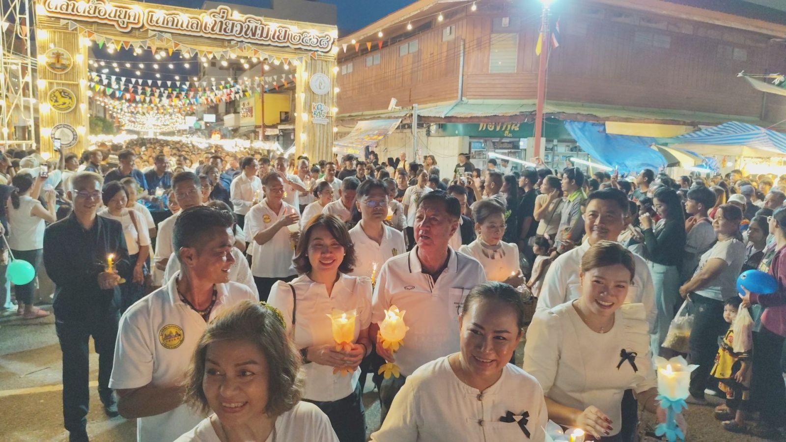 นครราชสีมา/// ช่วงเย็นวันที่ 9 พ.ย.68 นายกร ทัพพะรังสี อดีตรองนายกรัฐมนตรี และภรรยา นายศิวะเสก สินโทรัมย์ นายอำเภอพิมาย นายนิกร โสมกลาง สส.นครราชสีมา เขต8 นายก้องเกียรติ วิชชาพิณ นายกเทศมนตรีตำบลพิมาย พร้อมตัวแทนหน่วยราชการและประชาชนชาวพิมาย และนักท่องเที่ยวชาวไทย ชาวต่างชาติ เนืองแน่น ร่วมอัญเชิญดวงประทีปสักการะสิ่งศักดิ์สิทธิ์ในปราสาทหินพิมายจุดเริ่มประตูชัยแห่ขบวนโคมไฟประดับประดา
