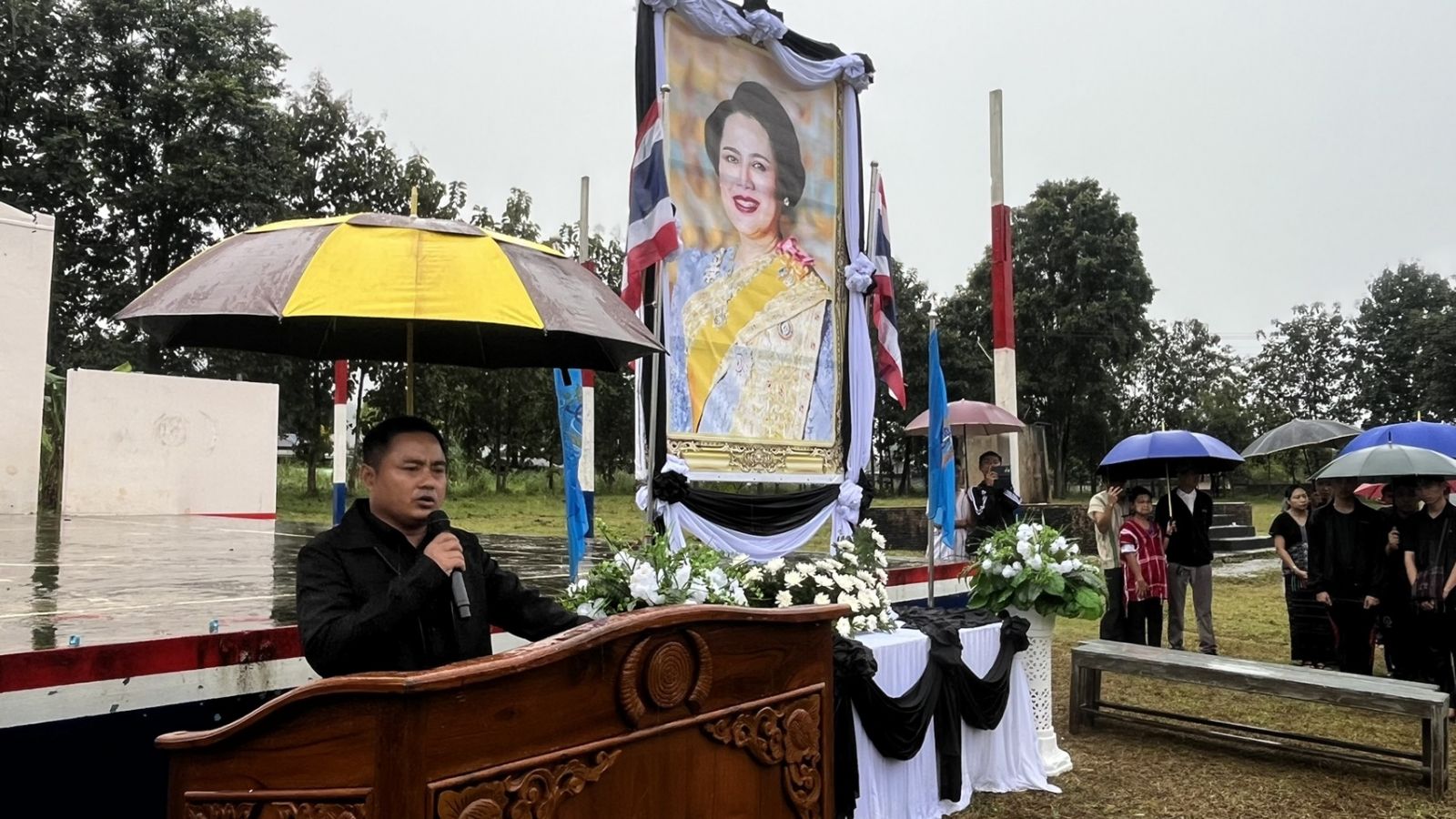 พันเอกเอวัน และตัวแทนส่วนราชการ ผู้นำชุมชน วางพวงมาลาหน้าพระบรมฉายาลักษณ์ เยาวชนขับร้องบทเพลง บรรเลงเพลงสรรเสริญพระบารมี ผู้ร่วมพิธีทำความเคารพพระบรมฉายาลักษณ์ ผู้แทนอ่านสาสน์ไว้อาลัย (ภาษาไทย และภาษากะเหรี่ยง)