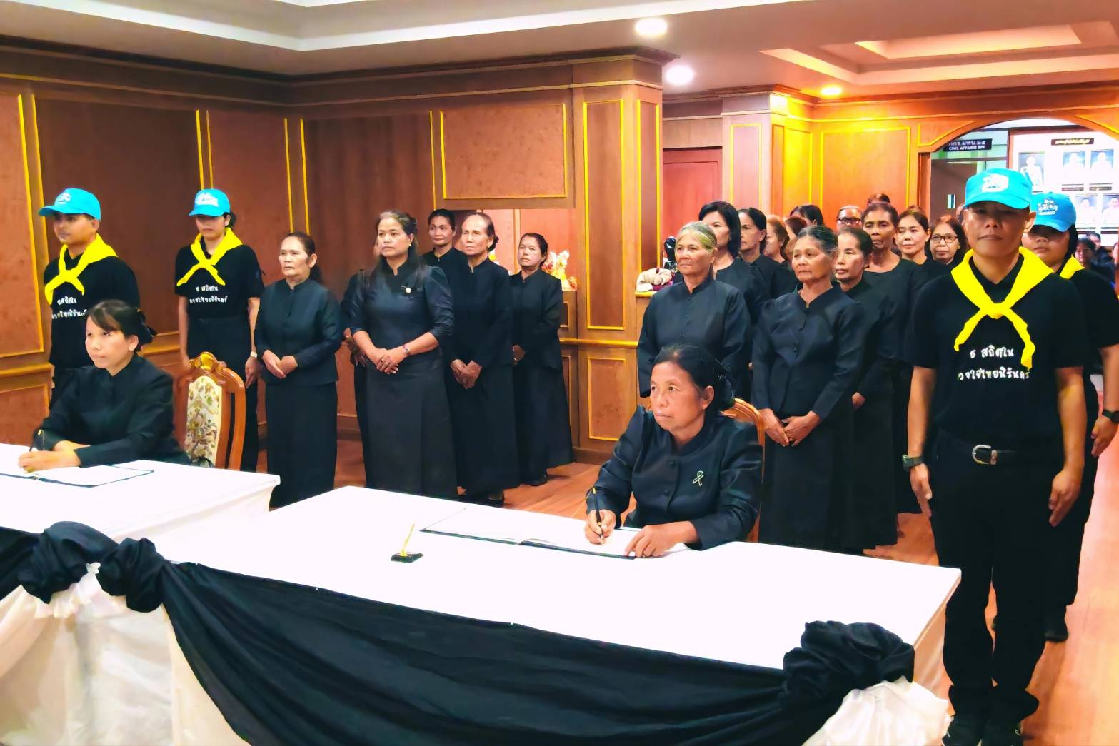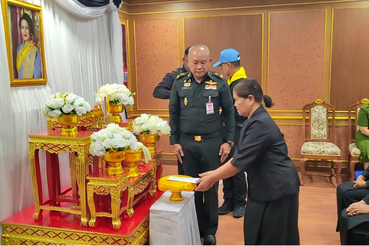 โดยมี, ผู้บังคับบัญชา, คณะสมาคมแม่บ้านทหารบก สาขา มณฑลทหารบกที่ 25, จิตอาสาพระราชทาน และ สมาชิก ศูนย์ส่งเสริมศิลปาชีพอีสานใต้ จังหวัดสุรินทร์ เข้าร่วมลงนาม ถวายความไว้อาลัยในครั้งนี้ อย่างพร้อมเพรียง
