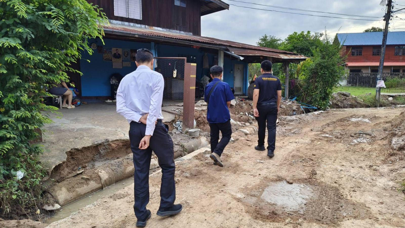 เมื่อวันที่ 14 พ.ย. 68 นายกันวลินทร์ เมืองแก้ว นายอำเภอเมืองศรีสะเกษ มอบหมายให้ นายศรายุธ สีละออง ปลัดอำเภอหัวหน้าฝ่ายความมั่นคง อ.เมืองศรีสะเกษ ร่วมกับ นายพันศักดิ์ ในทอง นายช่างโยธาชำนาญงาน รักษาราชการแทน ผอ.กองช่าง อบต.หนองครก และคณะ ลงพื้นที่ตรวจเยี่ยมผลการดำเนินงานโครงการวางท่อระบายน้ำ คสล.พร้อมบ่อพัก และปรับปรุงถนนคอนกรีตเสริมเหล็ก ที่บริเวณซอยสุขสำราญ หมู่ที่ 1 บ้านหนองครก ต.หนองครก อ.เมือง จ.ศรีสะเกษ หลังมีชาวบ้านร้องทุกข์ผ่านโซเชี่ยลสื่อออนไลน์ แจ้งว่าได้รับความเสียหายและความไม่ปลอดภัยในการที่หน่วยงานมาขุดลอกวางท่อระบายน้ำดังกล่าว จนได้รับผลกระทบกำแพงบ้านพังและทรุดตัวลงทั้งแถบ เกรงว่าบ้านจะทรุด และเกิดความไม่ปลอดภัย