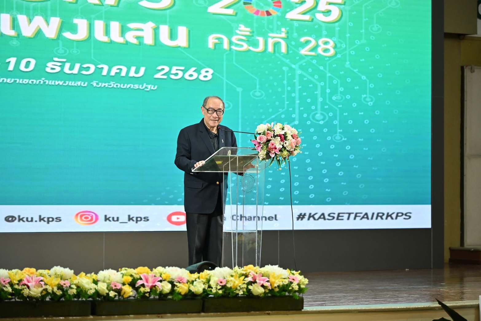 ที่ ห้องคอนเวนชั่น ศูนย์มหาวิทยาลัยเกษตรศาสตร์ วิทยาเขตกำแพงแสน อำเภอกำแพงแสน จังหวัดนครปฐม ดร.ดำรงค์ ศรีพระราม รักษาการแทนอธิการบดีมหาวิทยาลัยเกษตรศาสตร์ เป็นประธานการแถลงข่าวการจัดงานเกษตรกำแพงแสน ครั้งที่ 28 ภายใต้แนวคิด “แหล่งเรียนรู้ศาสตร์แห่งแผ่นดิน ถิ่นนวัตกรรมล้ำค่า สร้างสรรค์ปัญญาประดิษฐ์ เป็นมิตรกับสิ่งแวดล้อม” ระหว่างวันที่ 29 พฤศจิกายน ถึง 10 ธันวาคม 2568 เพื่อเปิดโอกาสและเป็นพื้นที่ให้แก่ บุคลากร นิสิต ได้เผยแพร่ผลงานทางการศึกษา ผลงานทางวิชาการ งานวิจัยทางวิทยาศาสตร์ และผลงานทางนวัตกรรมสิ่งประดิษฐ์ ด้านเทคโนโลยีต่างๆ อีกทั้งยังเป็นการสนับสนุนกิจกรรม และบทบาทของององค์กรที่มีความเกี่ยวข้องกับการเกษตรทั้งทางตรงและทางอ้อมให้แก่ เกษตรกร นักเรียน นิสิต นักศึกษา ตลอดจน ประชาชนทั่วไปที่สนใจ รวมถึงนักวิชาการผู้เชียวชาญหลากหลายสาขา ทั้งในประเทศและต่างประเทศ โดยได้รับพระมหากรุณาธิคุณจาก สมเด็จพระเจ้าน้องนางเธอ เจ้าฟ้าจุฬาภรณาลัยลักษณ์ อัครราชกุมารี กรมพระศรีสวางควัฒน วรขัตติยราชนารี เสด็จเป็นองค์ประธานเปิดงานเกษตรกำแพงแสน ครั้งที่ 28 ในวันจันทร์ที่ 1 ธันวาคม 2568"