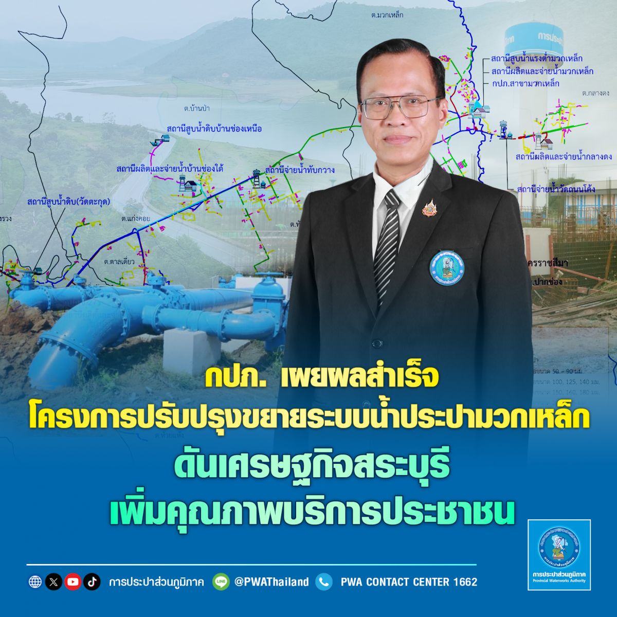 นายจักรพงศ์ คำจันทร์ ผู้ว่าการ กปภ. เปิดเผยว่า กปภ. มุ่งพัฒนาระบบประปาให้มีประสิทธิภาพและครอบคลุมทั่วประเทศ เพื่อให้ประชาชนทุกพื้นที่ได้เข้าถึงน้ำประปาสะอาดอย่างทั่วถึงและเท่าเทียม พร้อมสนับสนุนการเติบโตของเศรษฐกิจในทุกภูมิภาค โดยจากข้อมูลสถิติพบว่าปริมาณการใช้น้ำในพื้นที่ให้บริการของ กปภ.สาขามวกเหล็ก เพิ่มขึ้นอย่างต่อเนื่อง กปภ. จึงได้ดำเนินโครงการก่อสร้างปรับปรุงและขยายระบบประปา เพื่อยกระดับศักยภาพของระบบสูบน้ำดิบ ระบบผลิต และระบบจ่ายน้ำให้เพียงพอต่อความต้องการ โดยการก่อสร้างสถานีสูบน้ำดิบบ้านช่องเหนือ ระบบผลิตน้ำก่อสร้างสถานีผลิตน้ำมวกเหล็กขนาด 200 ลูกบาศก์เมตรต่อชั่วโมง และสถานีผลิตน้ำบ้านช่องใต้ขนาด 750 ลูกบาศก์เมตรต่อชั่วโมง ก่อสร้างถังน้ำใสขนาด 1,500 และ 6,000 ลูกบาศก์เมตร และก่อสร้างหอถังสูงขนาด 500 ลูกบาศก์เมตร ตลอดจนการวางท่อส่งและท่อจ่ายน้ำระยะทางรวมกว่า 32 กิโลเมตร ภายหลังโครงการก่อสร้างแล้วเสร็จ ทำให้ประชาชนในพื้นที่ อ.มวกเหล็ก อ.แก่งคอย และ อ.เมือง จ.สระบุรี รวมถึง อ.ปากช่อง จ.นครราชสีมา สามารถเข้าถึงน้ำประปาสะอาดได้ถึง 17,039 ราย ซึ่งสูงกว่าแผนงานฯ ร้อยละ 16.55 ซึ่งเป็นผู้ใช้น้ำประเภทที่อยู่อาศัย ตลอดจนประเภทธุรกิจขนาดเล็ก – ขนาดใหญ่ ที่ช่วยขับเคลื่อนเศรษฐกิจให้เดินหน้าต่อไปอย่างยั่งยืน