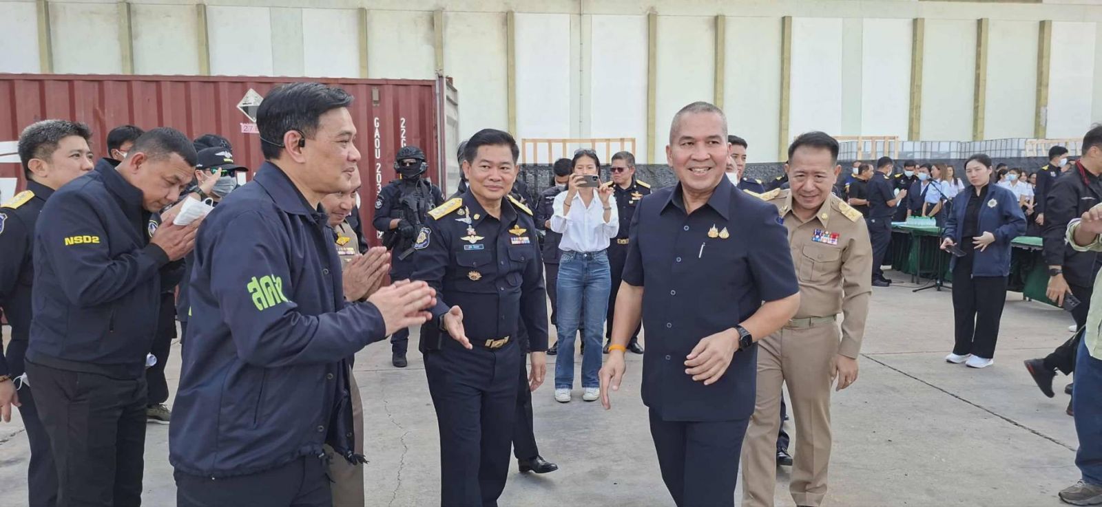 พลตำรวจโท อาชยน ไกรทอง ผู้บัญชาการตำรวจปราบปรามยาเสพติด นายยุทธนา พูลพิพัฒน์ รองอธิบดี กรมศุลกากร นายธีรทัศน์ อิศรางกูร ณ อยุธยา รองอธิบดีกรมโรงงานอุตสาหกรรม และเจ้าหน้าที่ที่เกี่ยวข้อง ลงพื้นที่เข้าตรวจสอบสารเคมีต้องสงสัยที่จะนำไปใช้ในการผลิตยาเสพติด ณ ท่าเรือแหลมฉบัง จังหวัดชลบุรี ภายใต้แนวคิด “No Chemical No Drugs”