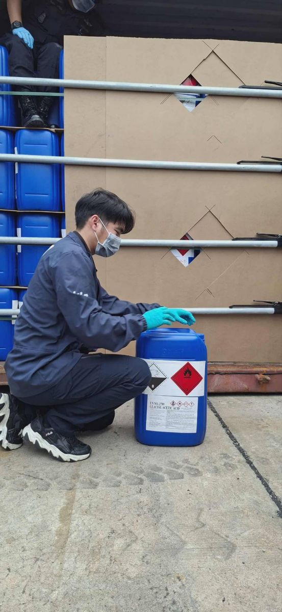เพื่อตรวจสอบข้อมูลดังกล่าว พบว่ามีบริษัทที่นำเข้าสารเคมี กรดอาเซติก (Acetic Acid) จำนวน 740 ถัง บรรจุถังละ 30 กิโลกรัม น้ำหนักรวม 22,200 กิโลกรัม นำเข้ามาจากเขตบริหารพิเศษฮ่องกงแห่งสาธารณรัฐประชาชนจีน เข้ามาประเทศไทย ณ ด่านศุลกากรท่าเรือแหลมฉบัง จังหวัดชลบุรี โดยไม่มีใบอนุญาตนำเข้า และไม่มีการขึ้นทะเบียนจากกรมโรงงานอุตสาหกรรม