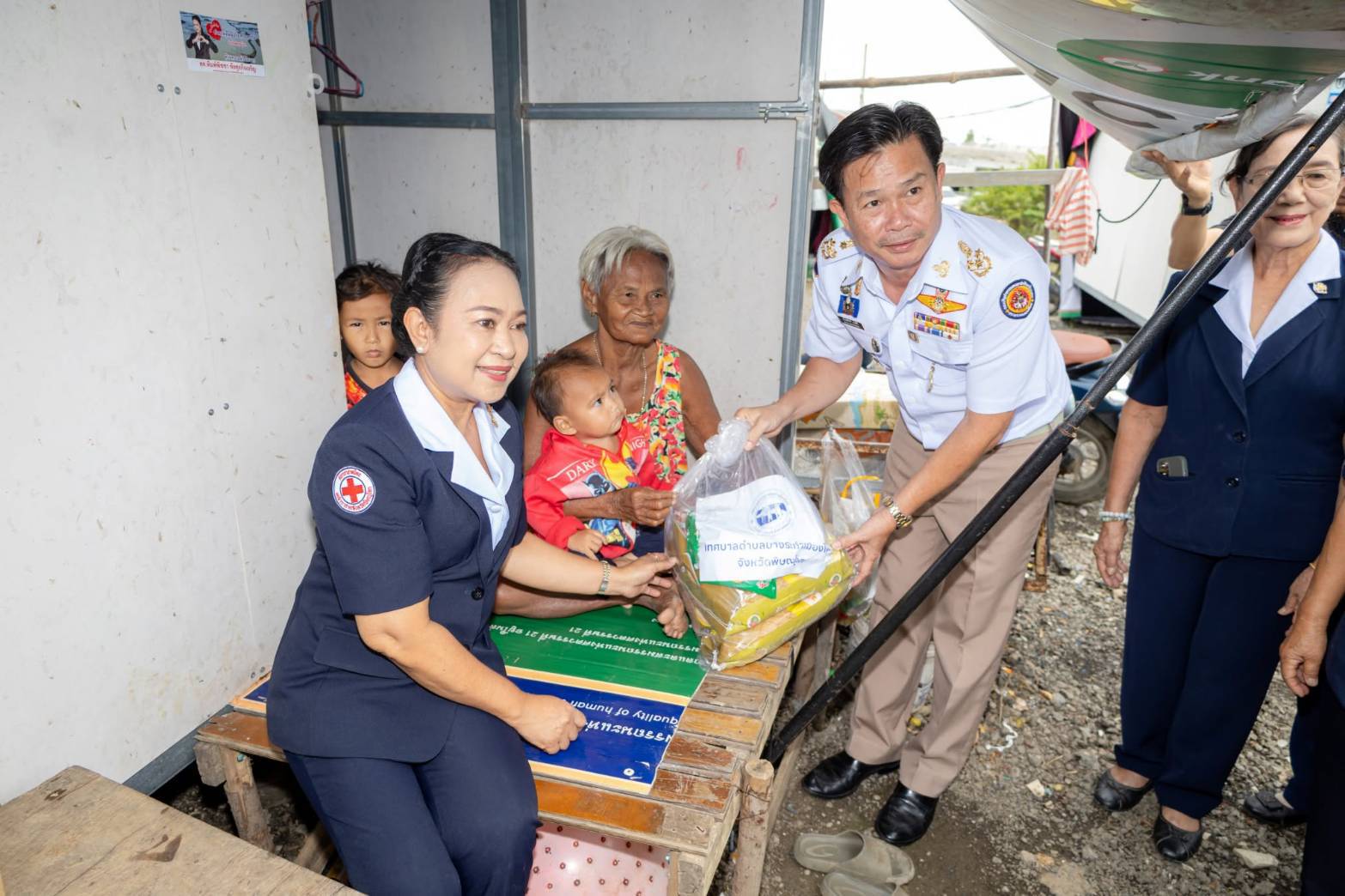 จากนั้นผู้ว่าราชการจังหวัดพิษณุโลก พร้อมคณะ ได้เดินทางต่อไปยังศูนย์ช่วยเหลือผู้ประสบอุทกภัย หมู่ 15 ตำบลบางระกำ (คุ้มแม่ย่า) เพื่อมอบเครื่องอุปโภคบริโภคเพิ่มเติมอีก 30 ชุด ให้แก่ผู้ประสบภัยในพื้นที่ดังกล่าว