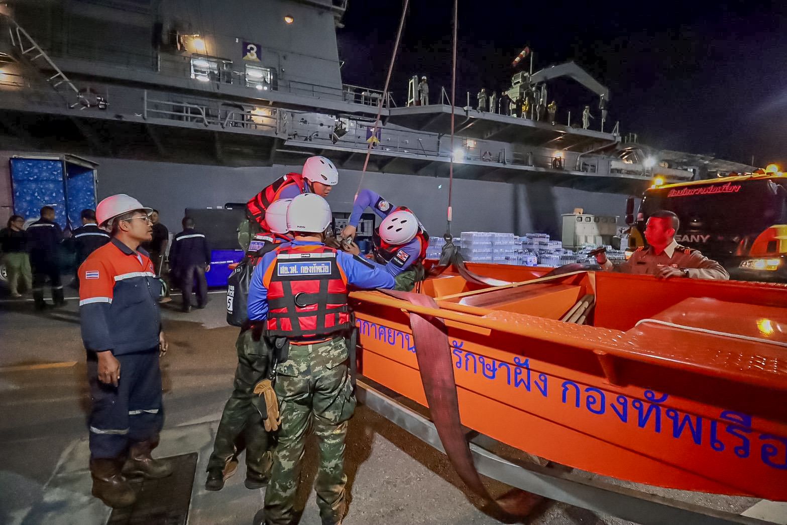 *** นอกจากนี้ เรือหลวงจักรีนฤเบศร มีขีดความสามารถในเป็นฐานบินลอยน้ำในการปฏิบัติการของเฮลิคอปเตอร์และโดรน และยังสามารถทำหน้าที่เป็นโรงพยาบาล ตลอดจน ครัวลอยน้ำ ที่มีขีดความสามารถผลิตอาหารปรุงสุกได้วันละประมาณ 3,000 ชุด พร้อมสนับสนุนการส่งทางอากาศสู่พื้นที่ประสบภัย ทั้งนี้ กองทัพเรือ ยังได้เตรียมจัดกำลัง เรือหลวงช้าง และเรือหลวงอ่างทอง เป็นกำลังช่วยเหลือระลอกที่ 2 หากจำเป็นต้องเพิ่มเติมกำลัง