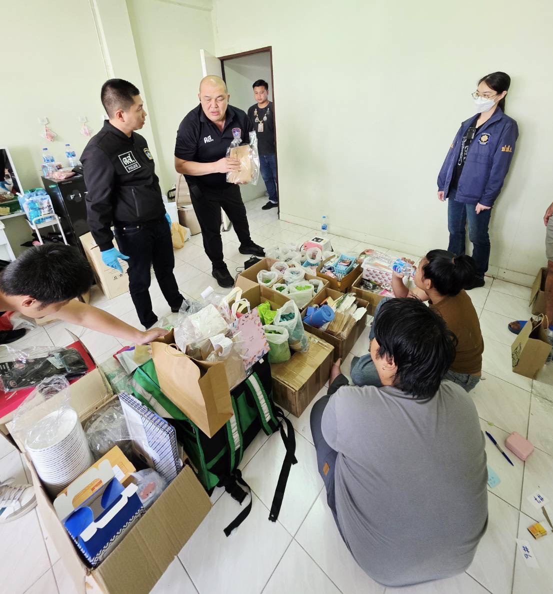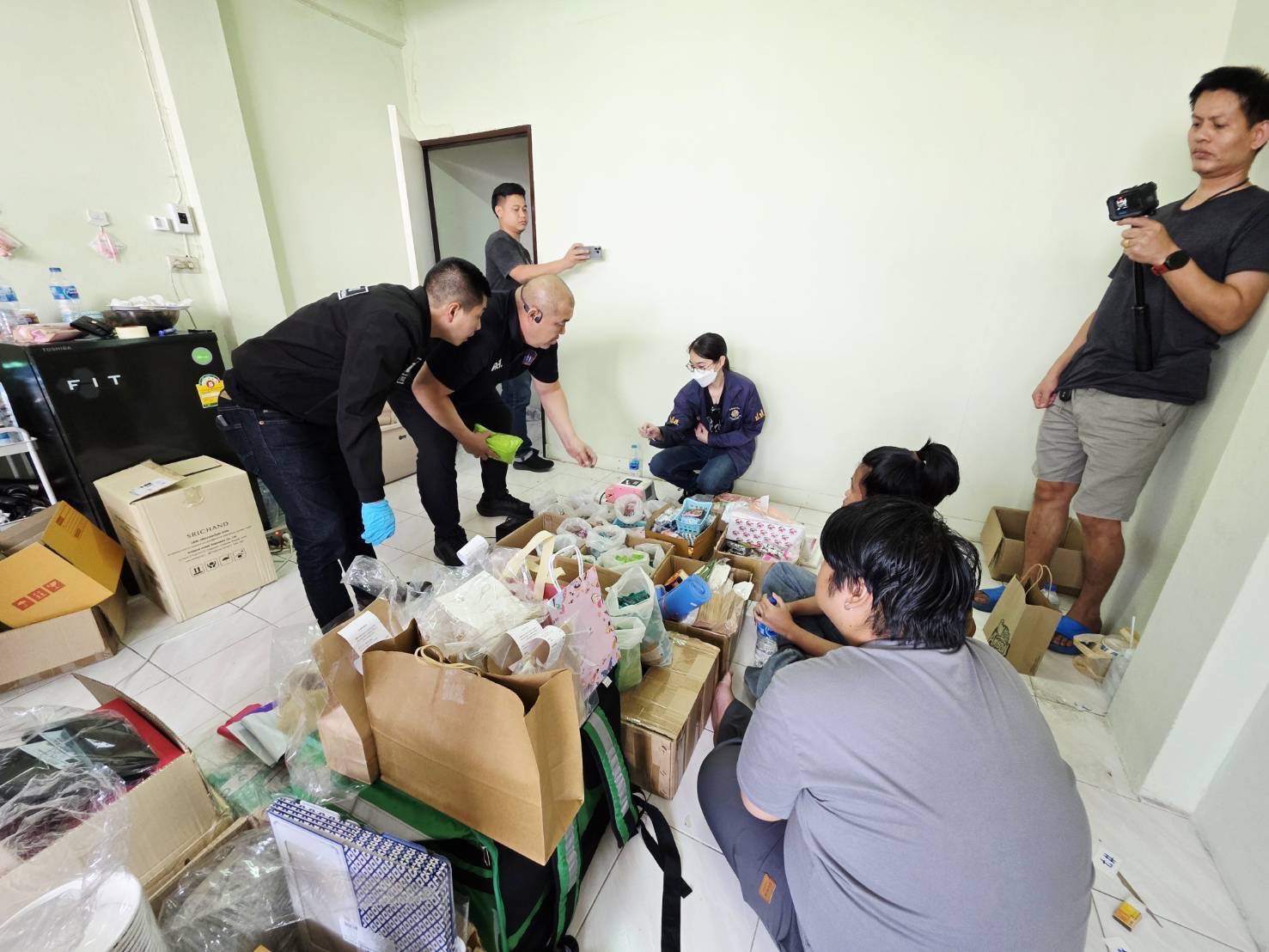 เจ้าหน้าที่ขึ้นตรวจชั้น 2 พบห้องทำงานลับเต็มไปด้วยอุปกรณ์แพ็กสินค้าและ หัวน้ำยาบุหรี่ไฟฟ้าปนสารเอโทมิเดทจำนวนล้นหลาม ทั้งคู่รับสารภาพ ทำหน้าที่แพ็ก–ลำเลียงตามจุดนัดหมาย ได้ค่าจ้างเดือนละ 25,000 บาท ติดต่อ “นายจ้าง” ผ่านแอปฯ เทเลแกรมเท่านั้น