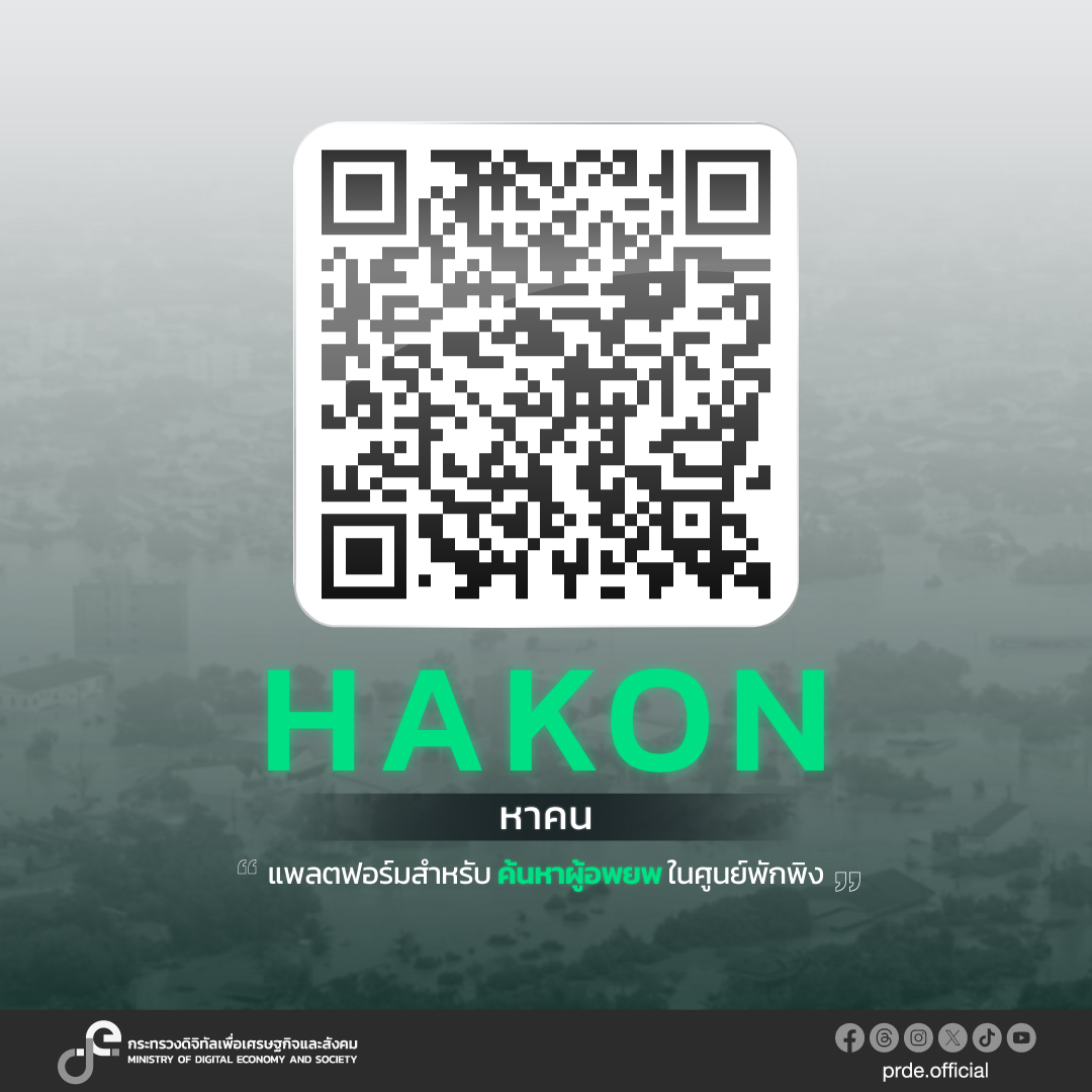 นายไชยชนก ชิดชอบ รัฐมนตรีว่าการกระทรวงดิจิทัลเพื่อเศรษฐกิจและสังคม (ดีอี) เปิดเผยว่า ตนได้สั่งการให้ สถาบันข้อมูลขนาดใหญ่ (องค์การมหาชน) หรือ BDI เร่งรัดบูรณาการเชื่อมโยงข้อมูลผู้ประสบภัยในศูนย์พักพิงต่างๆ ในพื้นที่ อ.หาดใหญ่ จ.สงขลา ร่วมกับ กรมการปกครอง (ปค.) กระทรวงมหาดไทย และมหาวิทยาลัยสงขลานครินทร์ (มอ.) เพื่อสนับสนุนการนำข้อมูลเข้าสู่ระบบค้นหาบุคคล “HAKON” (หาคน) ของมหาวิทยาลัยสงขลานครินทร์ โดยมีเป้าหมายให้ประชาชนและครอบครัวสามารถสืบค้นรายชื่อและติดตามญาติพี่น้องที่อาจพลัดหลงจากเหตุอุทกภัยได้อย่างสะดวก รวดเร็ว และแม่นยำมากขึ้น