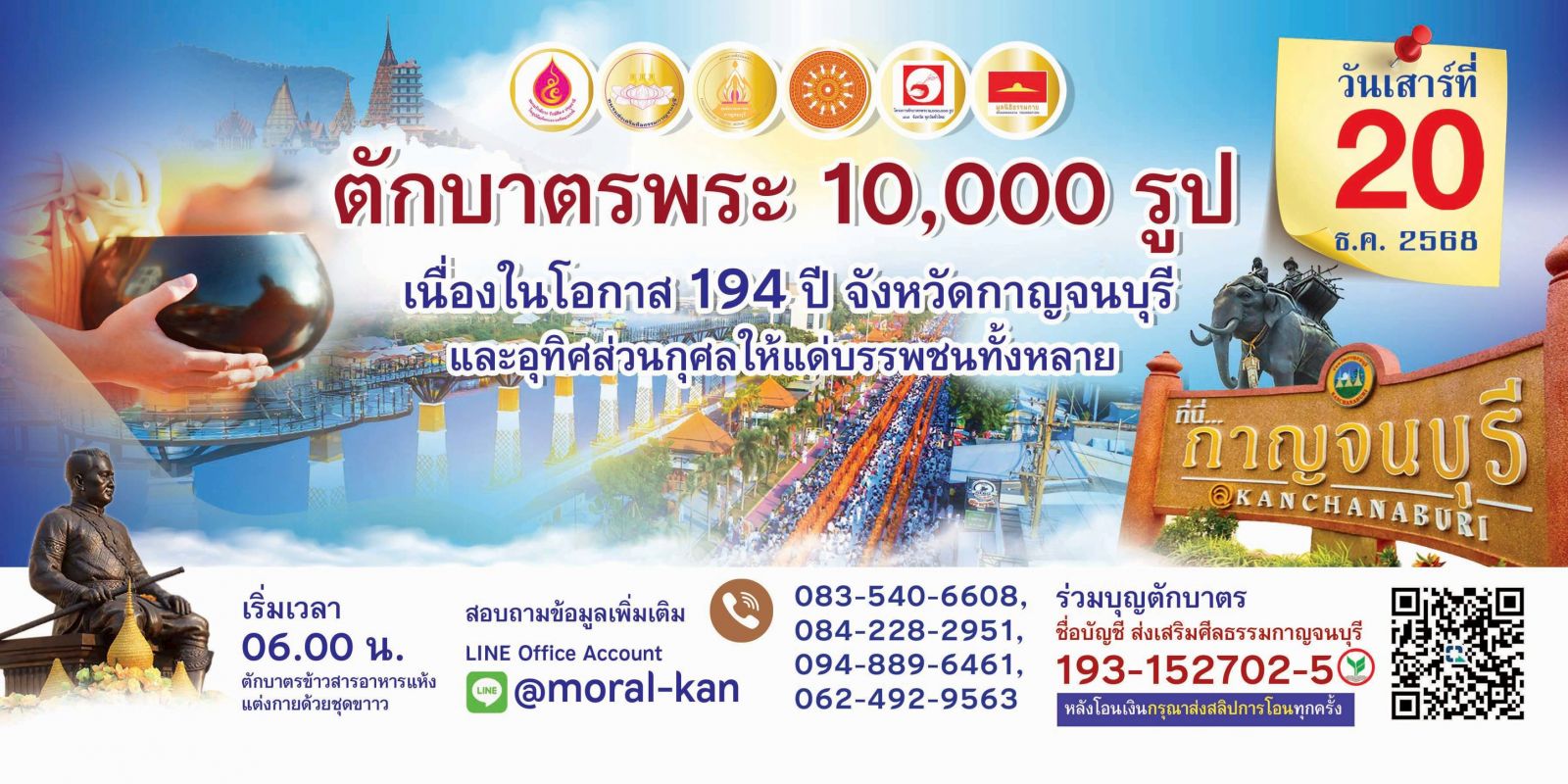 ด้านนางพรรณวิภา ปิยัมปุตระ รองผู้ว่าราชการจังหวัดกาญจนบุรี ได้กล่าวถึงความพร้อมของจังหวัด ภาคศาสนา และภาคประชาชน ในการจัดงานบุญครั้งใหญ่ คาดว่าจะมีทั้งประชาชนและนักท่องเที่ยวเดินทางเข้าร่วมจำนวนมาก ส่งผลดีต่อ เศรษฐกิจ การท่องเที่ยว โรงแรม ร้านอาหาร และธุรกิจบริการในพื้นที่ สอดรับกับนโยบายส่งเสริม Soft Power ด้านพุทธศาสนาและวัฒนธรรมของจังหวัด ทางจังหวัดกาญจนบุรี พร้อมต้อนรับพุทธศาสนิกชนจากทั่วประเทศร่วมพิธีตักบาตรพระ 10,000 รูป ซึ่งจะจัดขึ้นอย่างสง่างาม สมศักดิ์ศรีเมืองศรีวัฒนธรรม และร่วมกันสร้างพลังศรัทธาเพื่อความเป็นสิริมงคลแก่บ้านเมือง ชูภาพลักษณ์จังหวัดในฐานะเมืองท่องเที่ยวที่งดงามทั้งธรรมชาติ ประวัติศาสตร์ และวัฒนธรรมอันดีงาม