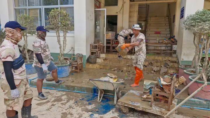 ผู้สื่อข่าวรายงานว่า ตั้งแต่ช่วงเช้า กำลังพล อส.กาญจนบุรี จำนวน 36 นาย ยังคงปฏิบัติภารกิจต่อเนื่อง ไม่มีหยุดพัก ทำความสะอาดเก็บกวาดโคลน ขยะ และสิ่งกีดขวาง เปิดทางระบายน้ำ และล้างถนนในจุดที่ได้รับผลกระทบ เพื่อให้ประชาชนสามารถกลับมาใช้เส้นทางได้ตามปกติและปลอดภัยมากขึ้น