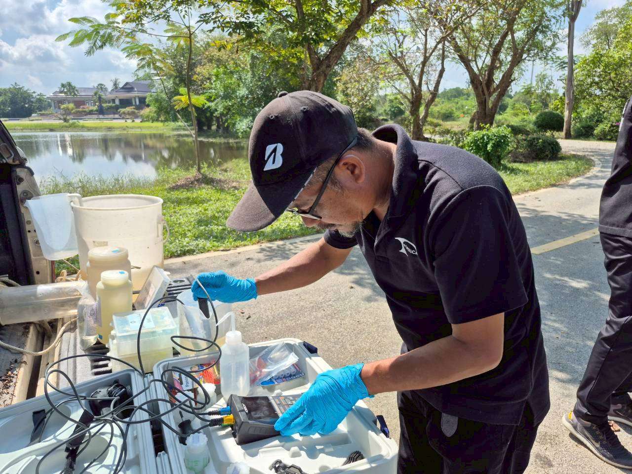 ในการติดตามตรวจสอบคุณภาพน้ำ เมื่อวันที่ 1 ธันวาคม 2568 เจ้าหน้าที่สำนักงานสิ่งแวดล้อมและควบคุมมลพิษที่ 16 (สคพ.16) ได้ติดตามตรวจสอบคุณภาพน้ำภาคสนามและเก็บตัวอย่างน้ำ ณ ทะเลสาบสงขลา คลองอู่ตะเภา คลองแห และคลองในพื้นทีอำเภอระโนด จำนวน 11 จุด พบว่า ออกซิเจนละลายน้ำ (DO) มีค่า 0.0 – 4.2 มิลลิกรัม/ลิตร ซึ่งบ่งชี้ถึงคุณภาพน้ำไม่ดี ถึงพอใช้ อาจเกิดจากการปนเปื้อนสารอินทรีย์หรือน้ำท่วมขังทำให้ออกซิเจนในน้ำลดลง ความขุ่น (Turbidity) มีค่า 0.61-53.7 NTU มีความผันผวนในแต่ละพื้นที่ ซึ่งคาดว่าเป็นผลมาจากน้ำท่วมที่พัดพาตะกอนลงสู่แหล่งน้ำ ส่วนความเป็นกรด-ด่าง (pH) ค่าการนำไฟฟ้า (Conductivity) และความเค็ม (Salinity)อยู่เกณฑ์ปกติ และ สคพ.16 ได้เก็บตัวอย่างคุณภาพน้ำส่งห้องปฏิบัติการฯ วิเคราะห์ความสกปรกในรูปสารอินทรีย์ แบคทีเรียกลุ่มโคลิฟอร์มทั้งหมด แบคทีเรียกลุ่มฟีคอลโคลิฟอร์ม และแอมโมเนียในหน่วยไนโตรเจน เพื่อประเมินคุณภาพน้ำจากสถานการณ์อุทกภัย และเพื่อประกอบการวางแผนจัดการคุณภาพน้ำในพื้นที่ต่อไป
