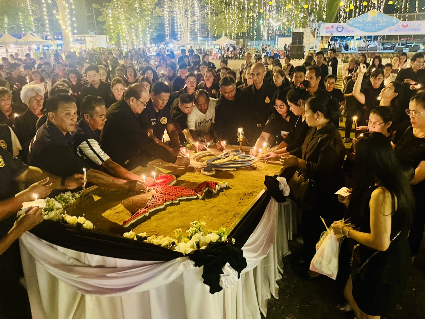 เมื่อช่วงค่ำวันที่ 7 ธ.ค. 2568 ที่บริเวณลานจามจุรี หน้าที่ว่าการอำเภอบางสะพาน จ.ประจวบคีรีขันธ์ นายสุทิน ประเสริฐศักดิ์ นายอำเภอบางสะพาน พร้อมด้วยกำนันผู้ใหญ่บ้าน,เจ้าหน้าที่ปกครอง,ส่วนราชการ,ภาคเอกชน ตลอดจนประชาชนกว่า 300 คน ได้ร่วมกันจุดเทียนแสดงความอาลัยและน้อมรำลึกในพระมหากรุณาธิคุณ สมเด็จพระนางเจ้าสิริกิติ์ พระบรมราชินีนาถ พระบรมราชชนนีพันปีหลวง พร้อมชมนิทรรศการ “บางสะพาน รำลึกรอยพระบาทแห่งศรัทธา พระเมตตา แผ่นดินทอง“ ที่จัดขึ้นในช่วงระหว่างวันที่ 6-14 ธันวาคม 2568 ณ บริเวณลานหน้าที่ว่าการอำเภอบางสะพาน