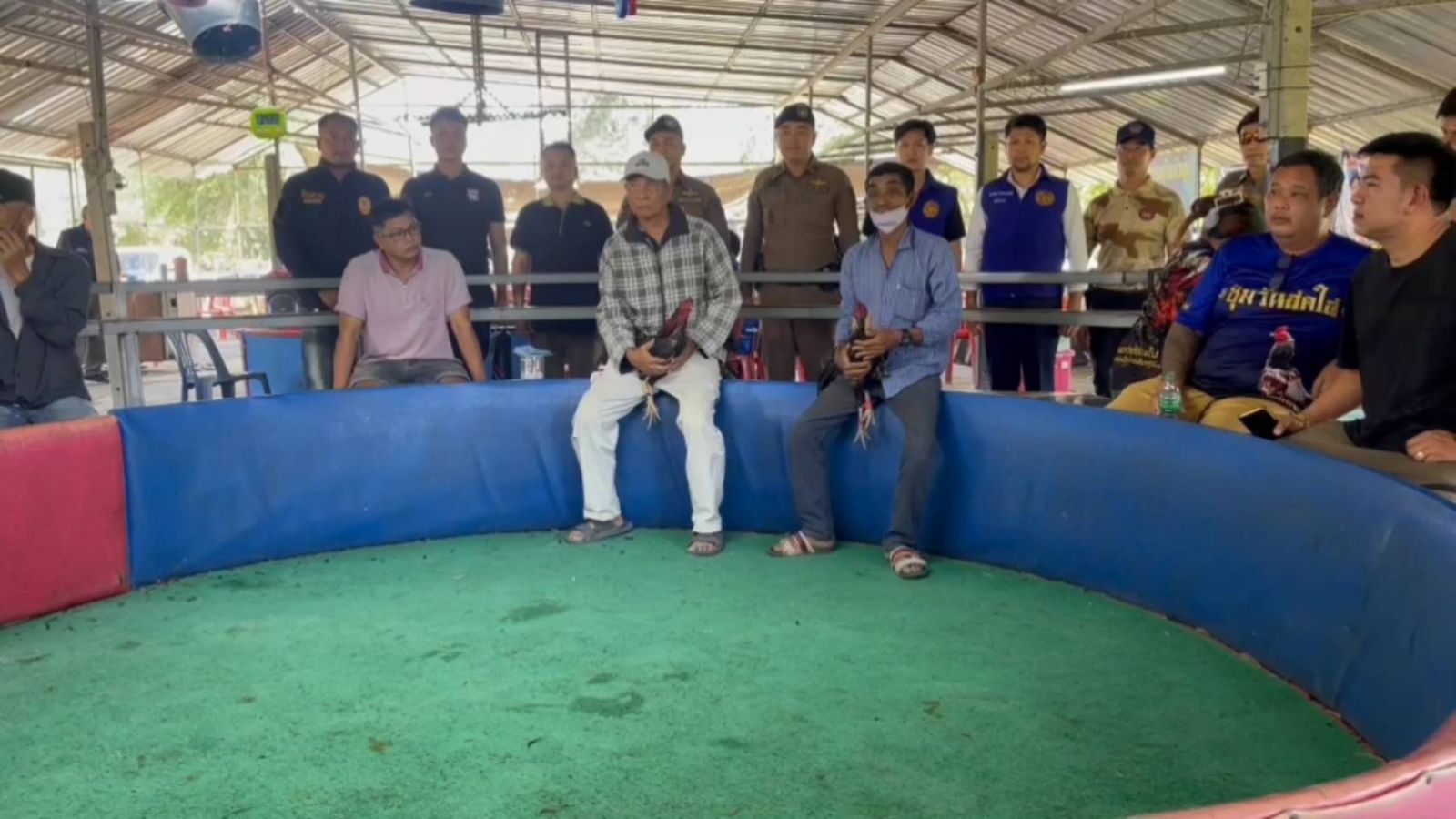 ปกครอง ตร.บางละมุง บุกทลายบ่อนไก่ชนกลางชุมชน “วงแตก” นักพนันวิ่งหนีอลหม่าน รวบ 22 ราย ยึดไก่นักสู้ 4 ตัว สังเวียนครบชุด