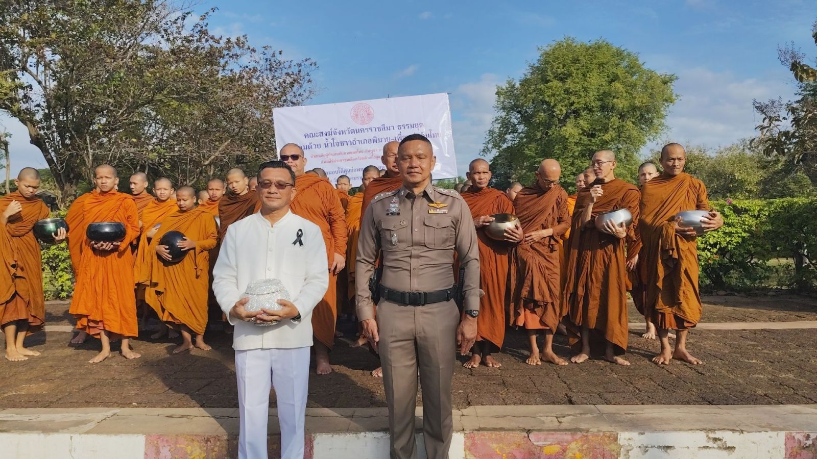 นครราชสีมา/// เมื่อเวลา 08.30 น.วันที่ 12 ธ.ค.68 นายศิวะเสก สินโทรัมย์ นายอำเภอพิมาย จ.นครราชสีมา ร่วมกับ พระครูคุณสารสัมปัน (ธรรมยุต)ที่ปรึกษาเจ้าคณะจังหวัดนครราชสีมา เจ้าอาวาสวัดป่าคุณสัมปันนาราม คณะสงฆ์ธรรมยุตจำนวน 30 รูป นายก้องเกียรติ วิชชาพิณ นายกเทศมนตรีตำบลพิมาย พ.ต.อ.ถึงพร ปานทอง ผกก.สภ.พิมาย ญาติธรรมทุกท่าน ทำบุญตักบาตรข้าวสาร อาหารแห้ง ณ บริเวณถนนจอมสุดาเสด็จ หน้าอุทยานประวัติศาสาตร์พิมาย อ.พิมาย จ.นครราชสีมาเพื่อส่งเป็นกำลังใจแด่แนวหน้าและผู้ประสพภัย ไทยนี้รักสงบแต่ถึงรบไม่ขาด คือคำมั่นสัญญาและกำลังใจจากคนไทยทั้งประเทศ จะอยู่เคียงข้างเสมอ เพื่อช่วยเหลือผู้ประสบภัยจากเหตุการณ์ปะทะแดนไทย-กัมพูชามอบให้ศูนย์อพยพและทหารไทย