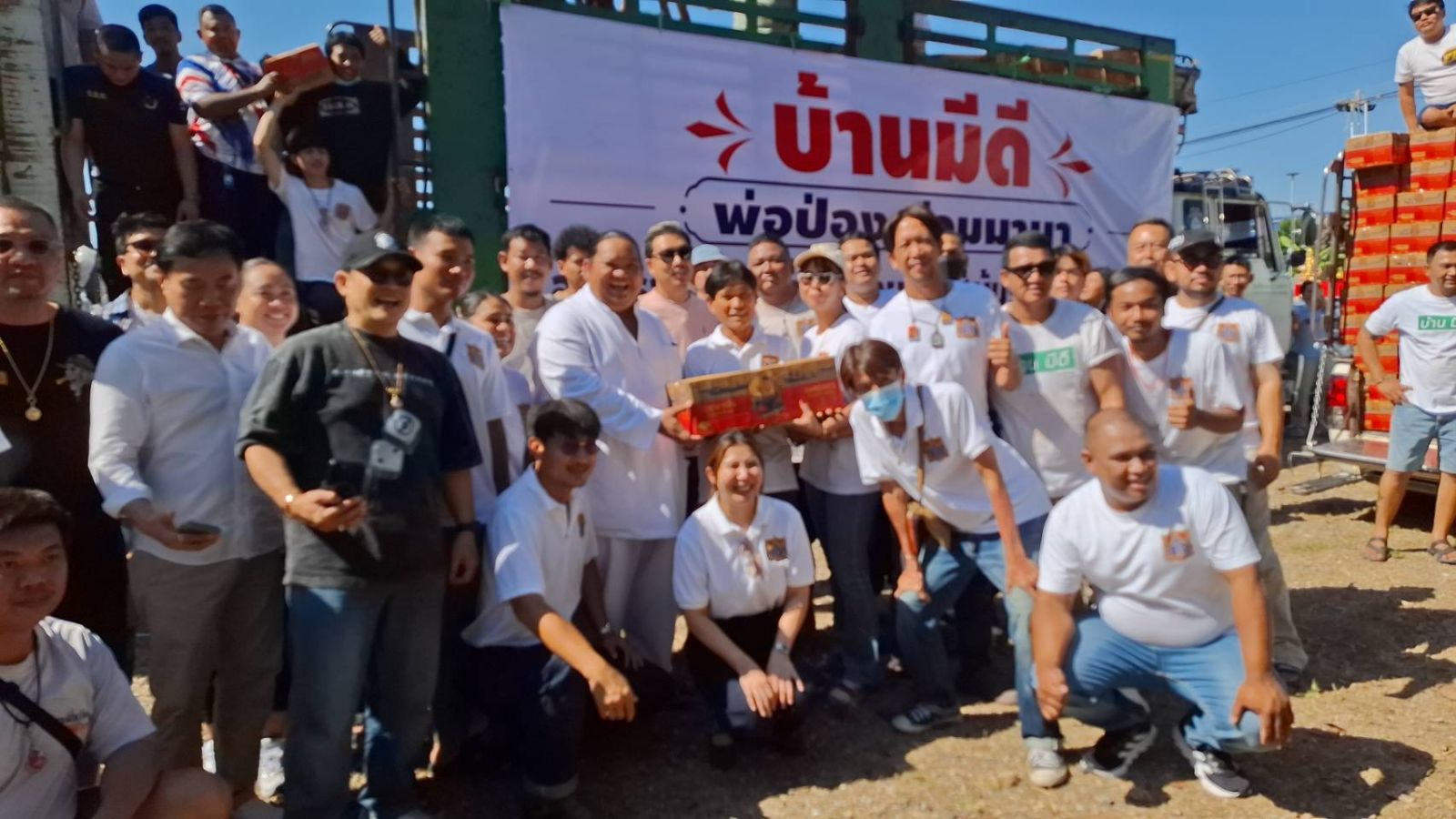 ด้าน อาจารย์แขก มันตระสยาม หรือ อาจารย์แขก รือเสาะ กล่าวว่า หลังจากที่ลูกศิษย์ได้มาร่วมทำพิธีเบิกเนตรพระอุปคุตฯ ได้มี พ่อป่อง น่วมมานา “บ้านมีดี” และบรรดาลูกศิษย์ต่างพากันร่วมสร้างบุญกัน โดยนำสิ่งของเครื่องใช้อาหาร ปลากระป๋อง เพื่อส่งไปช่วยเหลือเหล่าทหารกล้าที่สู้รบกับเขมร โดยการรวบรวมสิ่งของและได้นำรถบรรทุกขนส่งไปยังโรงทานพระราชทาน ในจุดศูนย์บริจาคสิ่งของ ทั้งของจังหวัดสระแก้ว ศรีสะเกษ สุรินทร์ นอกจากนี้เมื่อช่วงน้ำท่วมหาดใหญ่ ก็ร่วมบุญกันรวบรวมนำสิ่งของเข้าช่วยเหลือพี่น้องประชาชนชาวภาคใต้ ที่ถูกน้ำท่วมที่หาดใหญ่ด้วยเช่นกัน ถือเป็นความตั้งใจของอาจารย์และบรรดาลูกศิษย์ ที่ต้องการแบ่งปันช่วยเหลือ ชาวบ้านที่ประสบอุกทกภัยน้ำท่วมจนเดือดร้อนอย่างหนักและเพื่อเป็นขวัญกำลังใจให้กับเหล่าทหารกล้า ที่ต้องเสียสละต่อสู้กับเขมรเพื่อปกป้องประเทศชาติของเรา