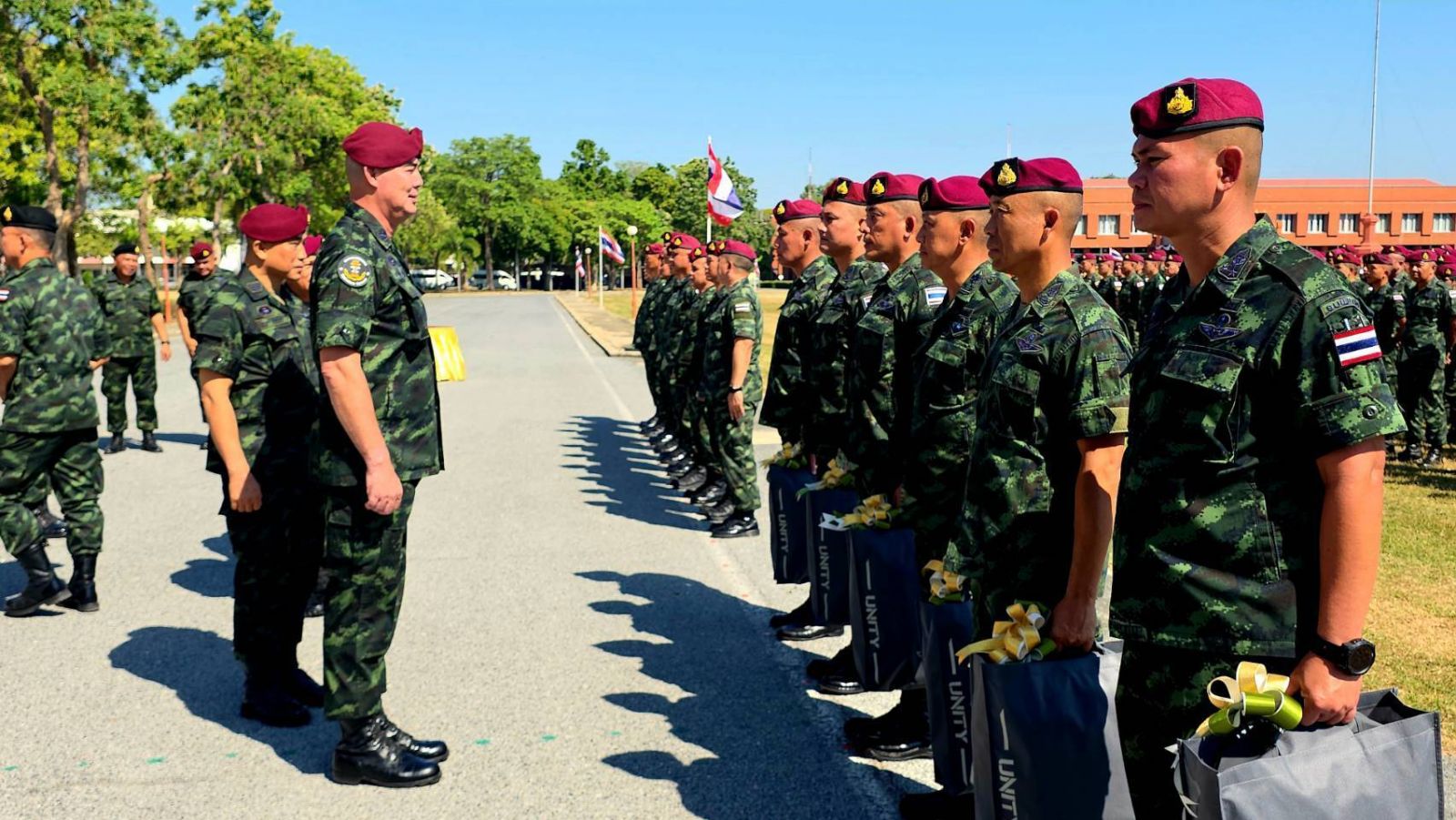 จากนั้น ได้เดินทางไปยัง ณ สนามสีหราชเดโช หน้ากองบัญชาการหน่วยบัญชาการสงครามพิเศษ เพื่อพบปะเยี่ยมเยียนกำลังพลหน่วยรบพิเศษ ส่งมอบของขวัญปีใหม่ จากกองทัพบก ให้แก่ผู้แทนหน่วย ซึ่งมีกำลังพลปฏิบัติราชการสนาม ตามแนวชายแดน ร่วมเป็นผู้แทนในการรับมอบ เพื่อส่งต่อให้แก่ทหารหน่วยรบพิเศษ ทั้งในที่ตั้งปกติ และ ผู้ซึ่งปฏิบัติภารกิจในการป้องกันประเทศตามแนวชายแดน เพื่อเป็นขวัญและกำลังใจแก่ทหารนักรบพิเศษทุกนาย ในการปฏิบัติงานในห่วงปีที่ผ่านมา ที่เน้นการพิทักษ์สถาบัน นำหน่วยสู่ความทันสมัย และมีความพร้อมต่อทุกภัยคุกคาม