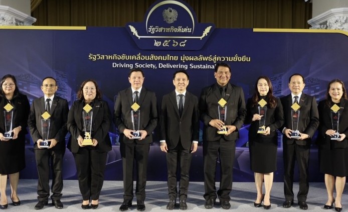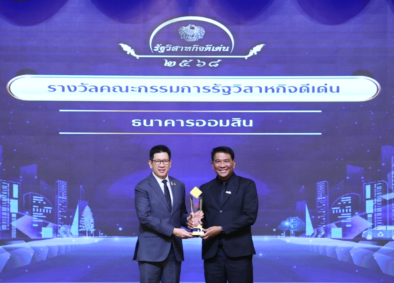 นายเอกนิติ นิติทัณฑ์ประภาศ รองนายกรัฐมนตรีและรัฐมนตรีว่าการกระทรวงการคลัง มอบรางวัลรัฐวิสาหกิจดีเด่น (SOE Award) ประจำปี 2568 ให้แก่ธนาคารออมสิน โดยมีผู้แทนรับมอบรางวัลได้แก่ รศ.ดร. ธนวรรธน์ พลวิชัย กรรมการธนาคารออมสิน พร้อมด้วย นางลภาวรรณ จันทร์กระจ่าง รองผู้อำนวยการธนาคารออมสิน รักษาการแทนผู้อำนวยการธนาคารออมสิน และผู้บริหาร ซึ่งเป็นปีที่ธนาคารออมสินได้รางวัลในระดับดีเด่นและเกียรติยศ ครบทั้ง 8 ประเภทรางวัลที่ธนาคารได้รับ จัดขึ้นโดยคณะกรรมการนโยบายรัฐวิสาหกิจ (สคร.) กระทรวงการคลัง ณ ตึกสันติไมตรี ทำเนียบรัฐบาล เมื่อวันที่ 22 ธันวาคม 2568