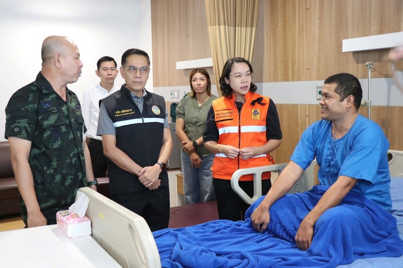 วันนี้ 4 ม.ค.69 ผู้สื่อข่าวรายงานว่า ที่ โรงพยาบาลค่ายสุรสีห์ อ.เมือง จ.กาญจนบุรี นางสาววริษฐา สงวนเสริมศรี ผู้ว่าราชการจังหวัดกาญจนบุรี พร้อมด้วย นายฑรัท เหลืองสอาด รองผู้ว่าราชการจังหวัดกาญจนบุรี พลตรี ชนมากรณ์ ภิบาลชนม์ ผู้บัญชาการมณฑลทหารบกที่17 เยี่ยมและให้กำลังใจ จ.ส.อ.ธีระ หมวกเพ็ชร นายทหารที่ได้รับบาดเจ็บสาหัสจากการปฏิบัติหน้าที่