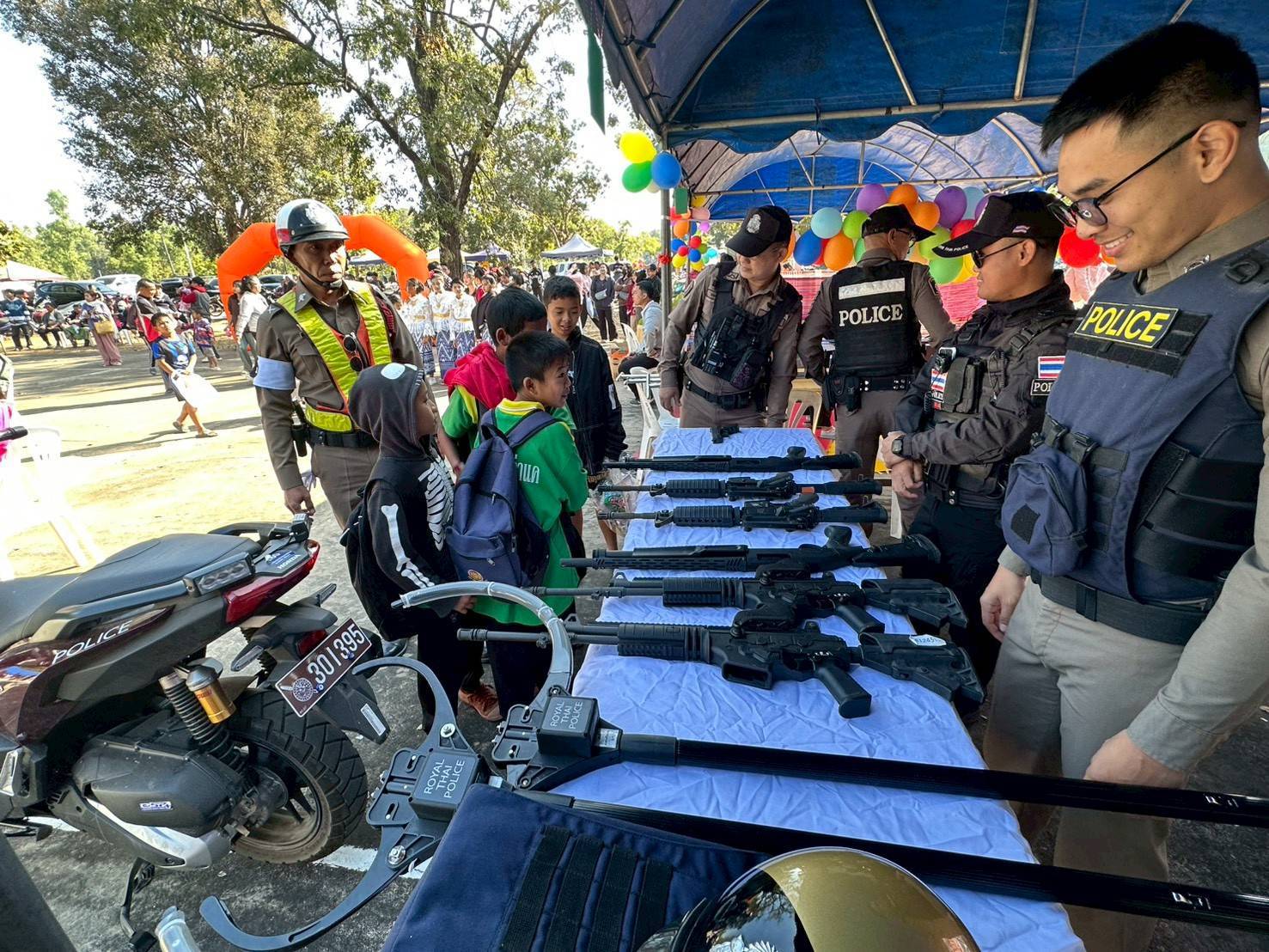 โดยได้มีการจัดบูธให้เด็กๆร่วมกิจกรรม อาทิ การแสดงความสามารถแจกรถจักรยาน จำนวน 1 คัน นำอาวุธปืน ไม้ง่ามไฟฟ้า มาจัดแสดงโชว์ให้เด็กและเยาวชนได้ชมและถ่ายรูปเป็นที่ระลึก สร้างความประทับใจที่ดี พร้อมแจกจ่ายขนมให้กับเด็กๆที่มาร่วมกิจกรรมที่บูธของ สภ.โพนเขวา ภายในงาน
