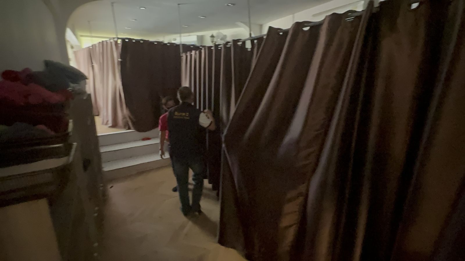 ร้านแรกพบหญิงอายุ 25 ปี แสดงตัวเป็นผู้ดูแลร้าน ภายในมีเตียงนวดหลายจุดและอุปกรณ์ครบชุด ขณะเข้าตรวจค้นพบลูกค้ากำลังนั่งรับบริการ โดยหนึ่งในหมอนวดกำลังให้บริการกับเจ้าหน้าที่ตำรวจที่แฝงตัวมาเป็นลูกค้า เจ้าหน้าที่จึงแสดงตัว สั่งหยุดให้บริการทันที พร้อมบันทึกภาพเป็นหลักฐาน และตรวจยึดอุปกรณ์ทั้งหมด ทั้งน้ำมันนวด ยาหม่อง และเครื่องมือที่ใช้ในกิจการ