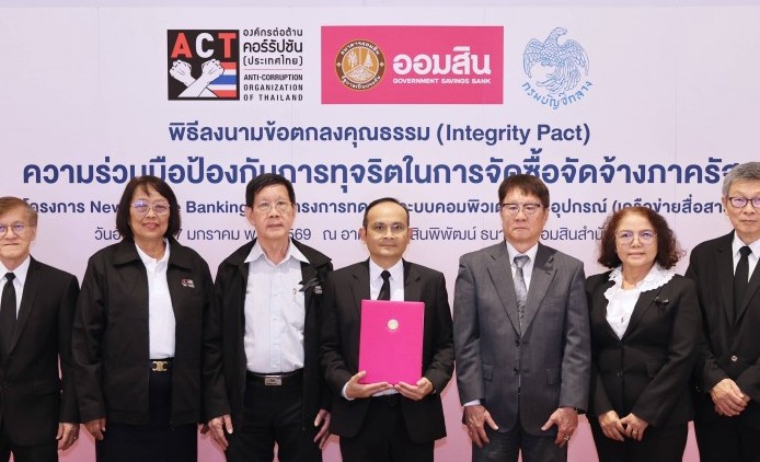 โดยสอดคล้องกับการดำเนินการด้วยหลักธรรมาภิบาลของธนาคาร ที่ให้ความสำคัญในการบริหารจัดการงบประมาณ และทรัพยากรของธนาคาร ด้วยความรอบคอบ โปร่งใส และเกิดประโยชน์สูงสุด มีกระบวนการทำงานที่มีความสุจริต เที่ยงธรรม ตรวจสอบได้ในทุกขั้นตอน และเปิดโอกาสให้ภาคเอกชนเข้าแข่งขันอย่างเท่าเทียม โดยมี นางสาวศิริพร เลิศสัตยสุกใส นายณัทธร โพธิแพทย์ รองผู้อำนวยการธนาคารออมสิน พร้อมด้วย นางสาวสิรินันท์ จิรดิลก กรรมการผู้จัดการ บริษัท จีเอสบี ไอที แมเนจเม้นท์ จำกัด ในฐานะกรรมการโครงการ และนายกิตติเดช ฉันทังกูล ผู้อำนวยการองค์กรต่อต้านคอร์รัปชัน (ประเทศไทย) ร่วมเป็นสักขีพยาน ณ อาคารออมสินพิพัฒน์ ธนาคารออมสิน สำนักงานใหญ่ เมื่อวันที่ 27 มกราคม 2569