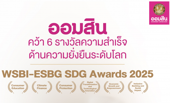 นางลภาวรรณ จันทร์กระจ่าง รองผู้อำนวยการธนาคารออมสิน รักษาการแทนผู้อำนวยการธนาคารออมสิน เปิดเผยว่า ธนาคารประสบความสำเร็จได้รับรางวัล WSBI-ESBG SDG Awards 2025 เวทีรางวัลด้านความยั่งยืนระดับโลกซึ่งจัดขึ้นเป็นครั้งแรก โดยธนาคารออมสินเป็นองค์กรที่ได้รับรางวัลมากที่สุดในปีนี้ สะท้อนความโดดเด่นของการดำเนินงานที่บูรณาการหลัก ESG เข้ากับยุทธศาสตร์การเป็น “ธนาคารเพื่อสังคม” อย่างเป็นรูปธรรม ครอบคลุมมิติสังคม สิ่งแวดล้อม และเศรษฐกิจ สอดคล้องกับเป้าหมายการพัฒนาที่ยั่งยืน (SDGs) ขององค์การสหประชาชาติ โดยได้รับรางวัลรวมทั้งสิ้น 6 สาขา ได้แก่ Consumer Education, Climate Finance, Consumer Protection, Digital Transformation and Technological Innovation, Economic Growth and Empowerment, Inclusive Banking and Social Impact ทั้งนี้ รางวัลดังกล่าวจัดขึ้นโดย World Savings and Retail Banking Institute และ European Savings and Retail Banking Group (WSBI-ESBG) เพื่อเชิดชูผลงานของสถาบันการเงินที่มีความโดดเด่นด้านการขับเคลื่อนการธนาคารอย่างครอบคลุม (Inclusive) ยั่งยืน (Sustainable) และมีความรับผิดชอบ (Responsible) ผ่านนวัตกรรมและโซลูชันทางการเงินที่รองรับการเปลี่ยนผ่านสู่ดิจิทัล และสร้างผลลัพธ์เชิงบวกต่อสังคมอย่างแท้จริง คัดเลือกจากสมาชิกทั้งหมดกว่า 76 ประเทศ ใน 5 ทวีปทั่วโลก